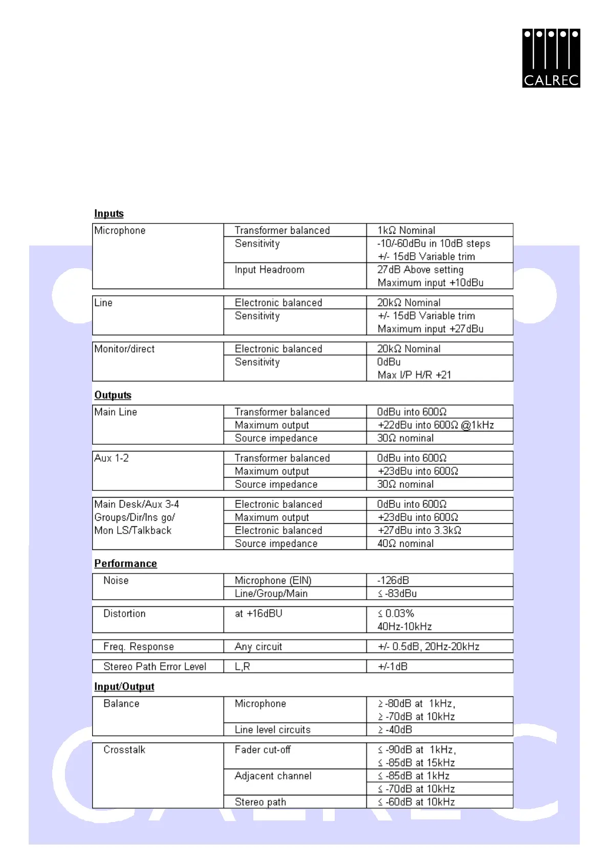 Calrec M3 - SPECIFICATION