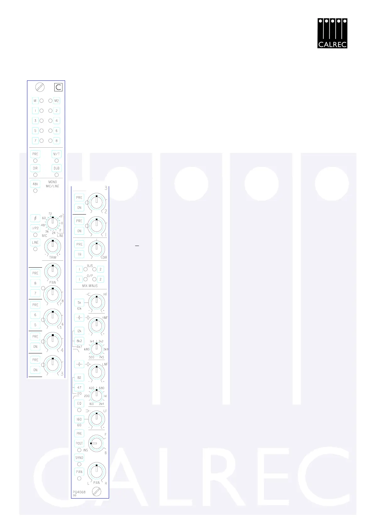 Bus 2 overides Bus 1. Internal pre/post fader selection of bus feed Yellow LED’s.