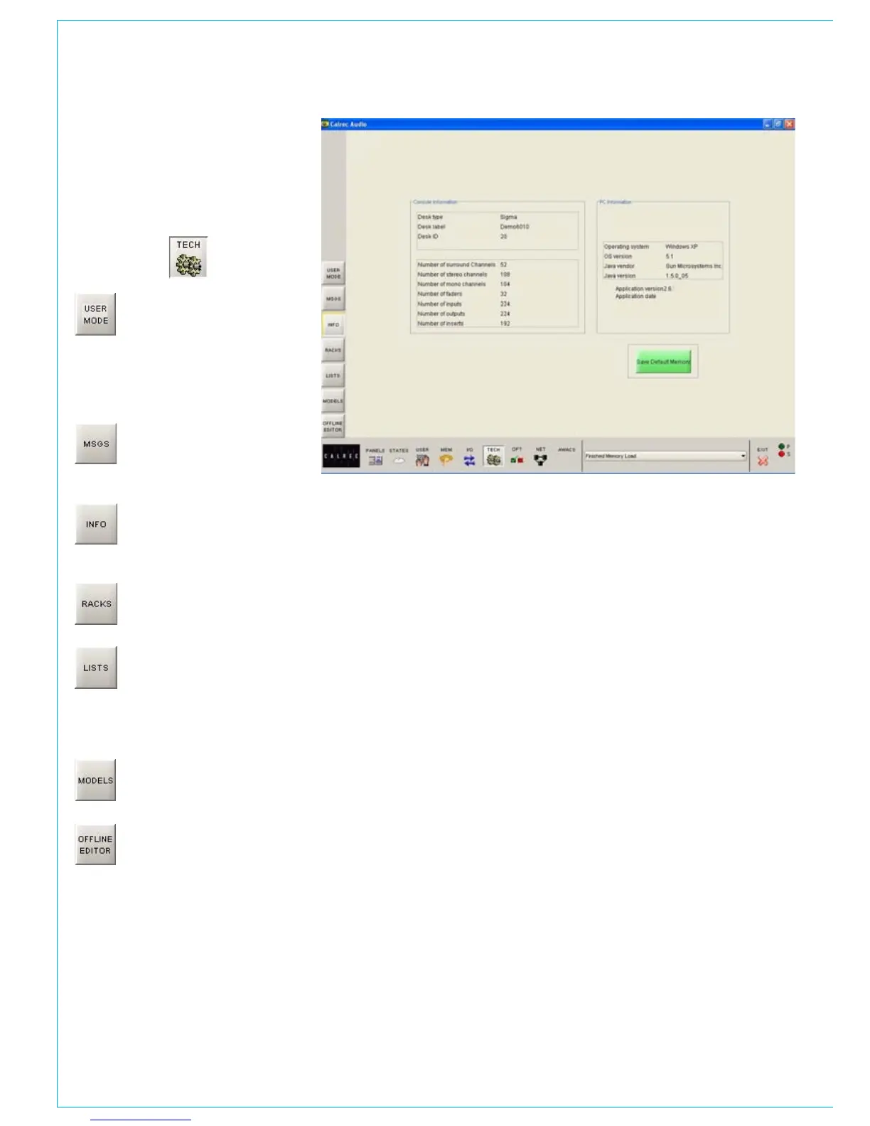 Info Screen and Default Memory