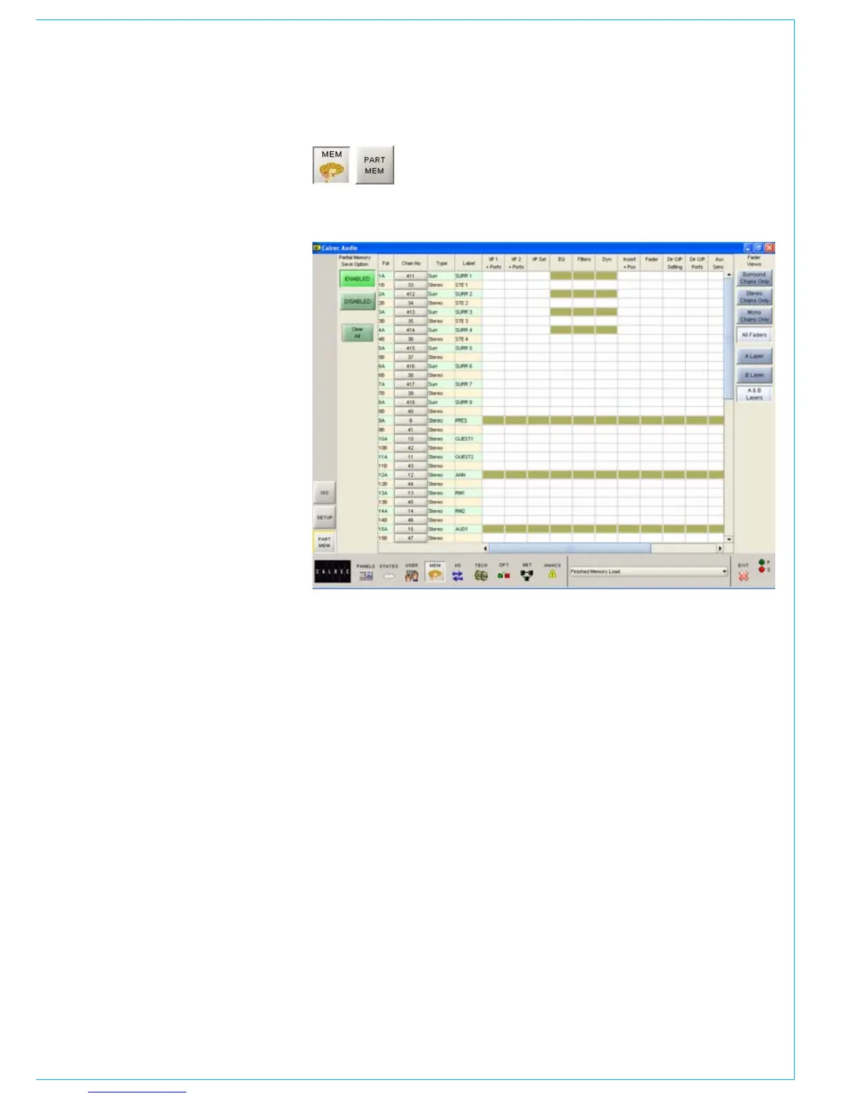 A partial memory only loads those channels