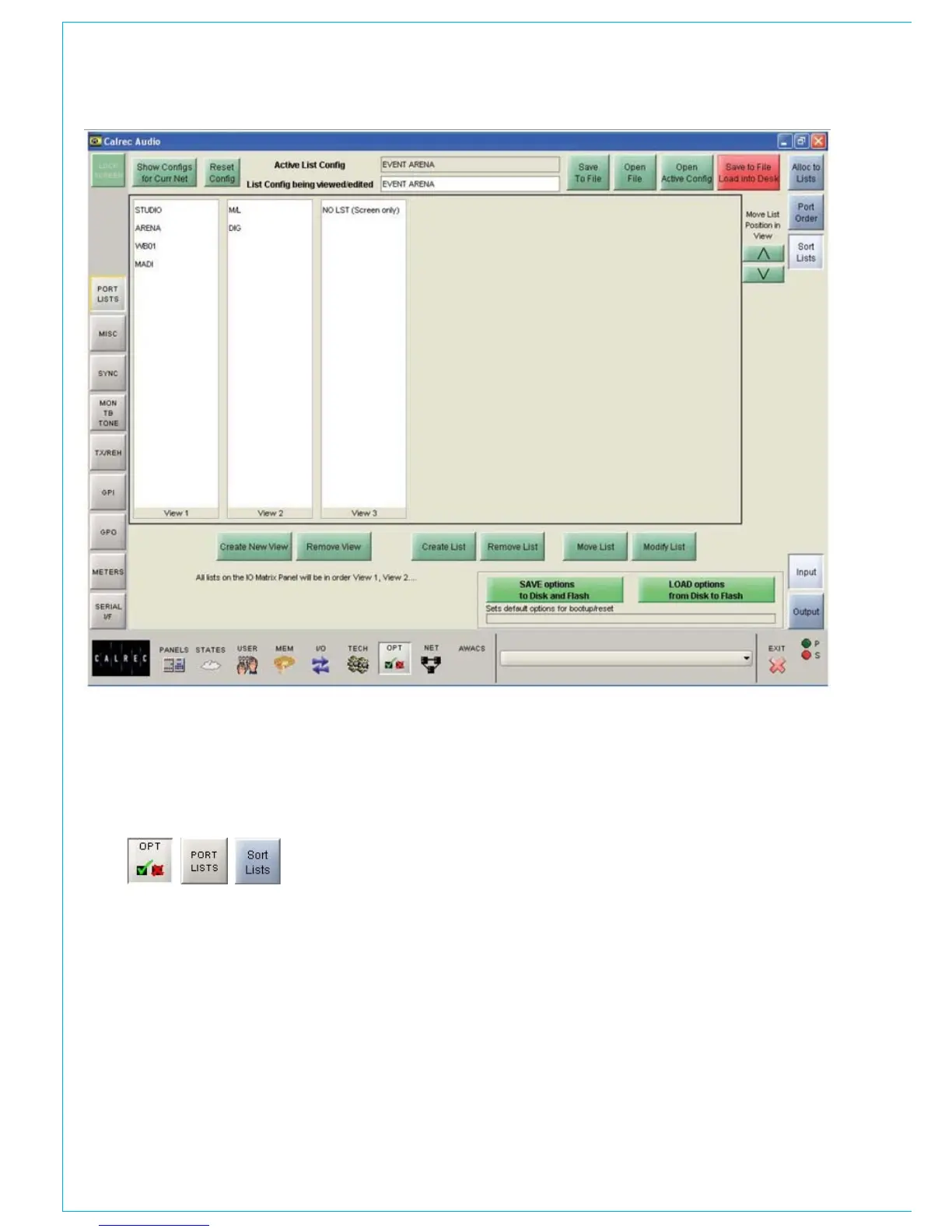 I/O patching screen. Placing views under