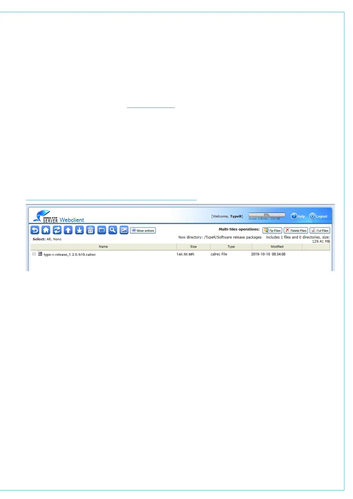 Software releases for Type R are made available online via an FTP server. To access this and check the latest software version,