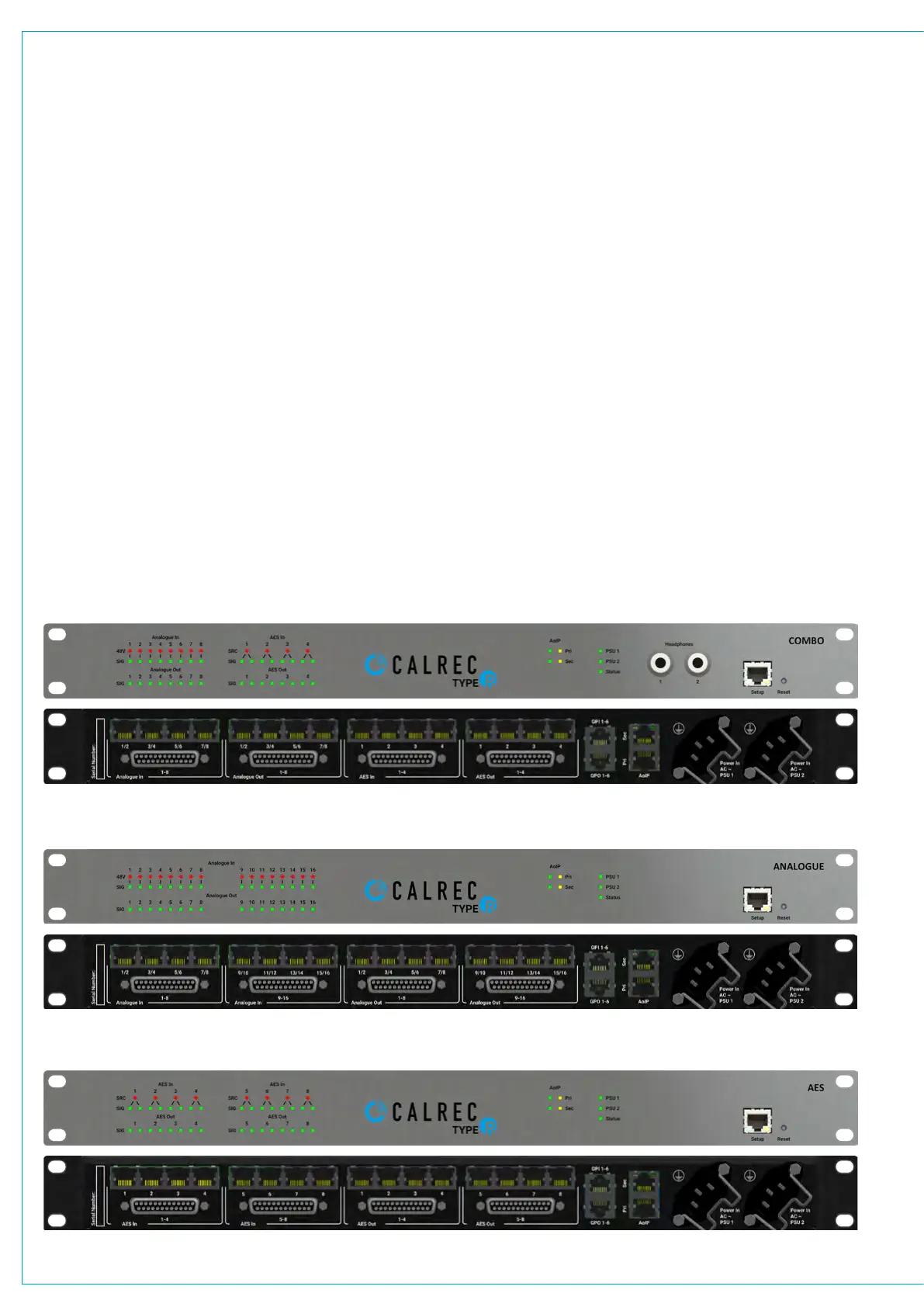In addition to the 2 x IEC power connectors on the rear of each unit, there is an AoIP interface via RJ45 connectors (with redundant