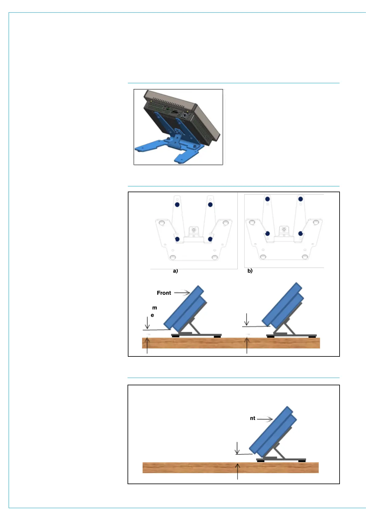 b) Bottom edge 15mm to desk surface