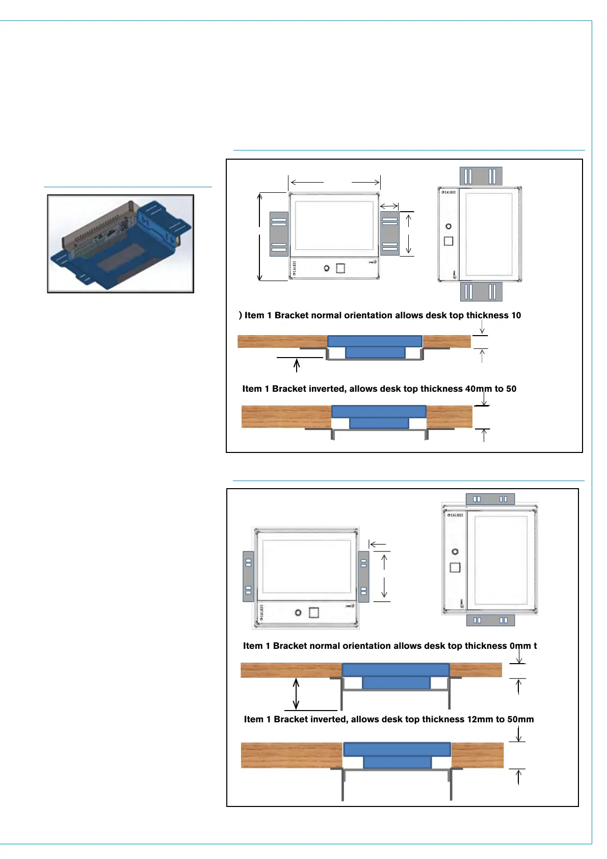 a) Item 1 Bracket normal orientation allows desk top thickness 10mm to 20mm