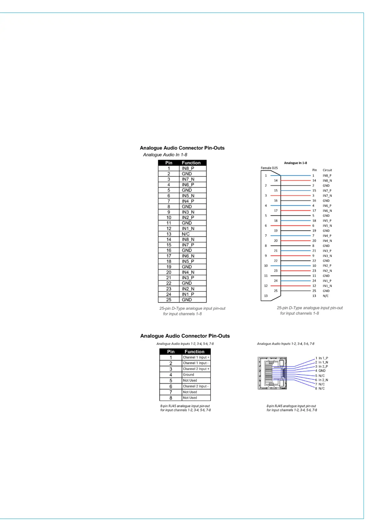on the boxes using the AES59/Tascam® standard with a parallel set of connectors on RJ45 each carrying a pair of