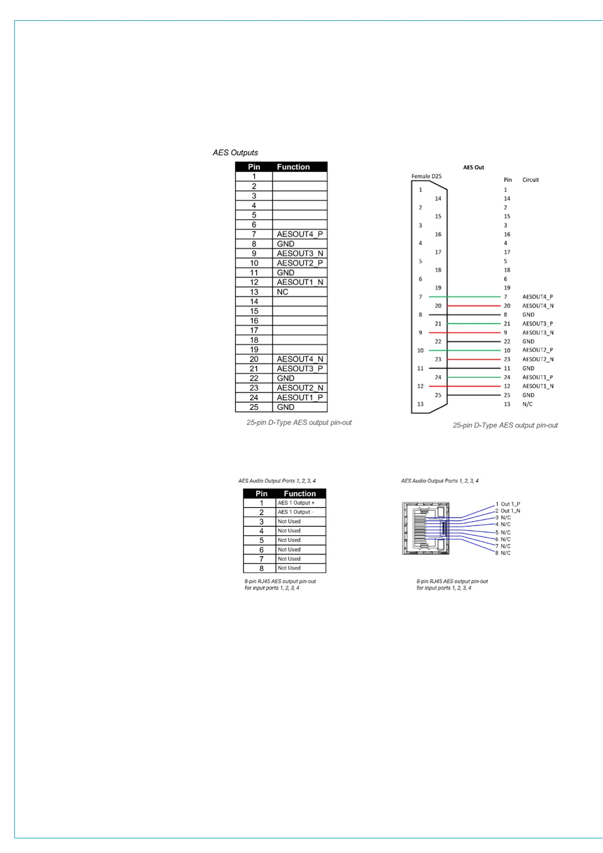 The pinout for AES output ports 2, 3, 4 is