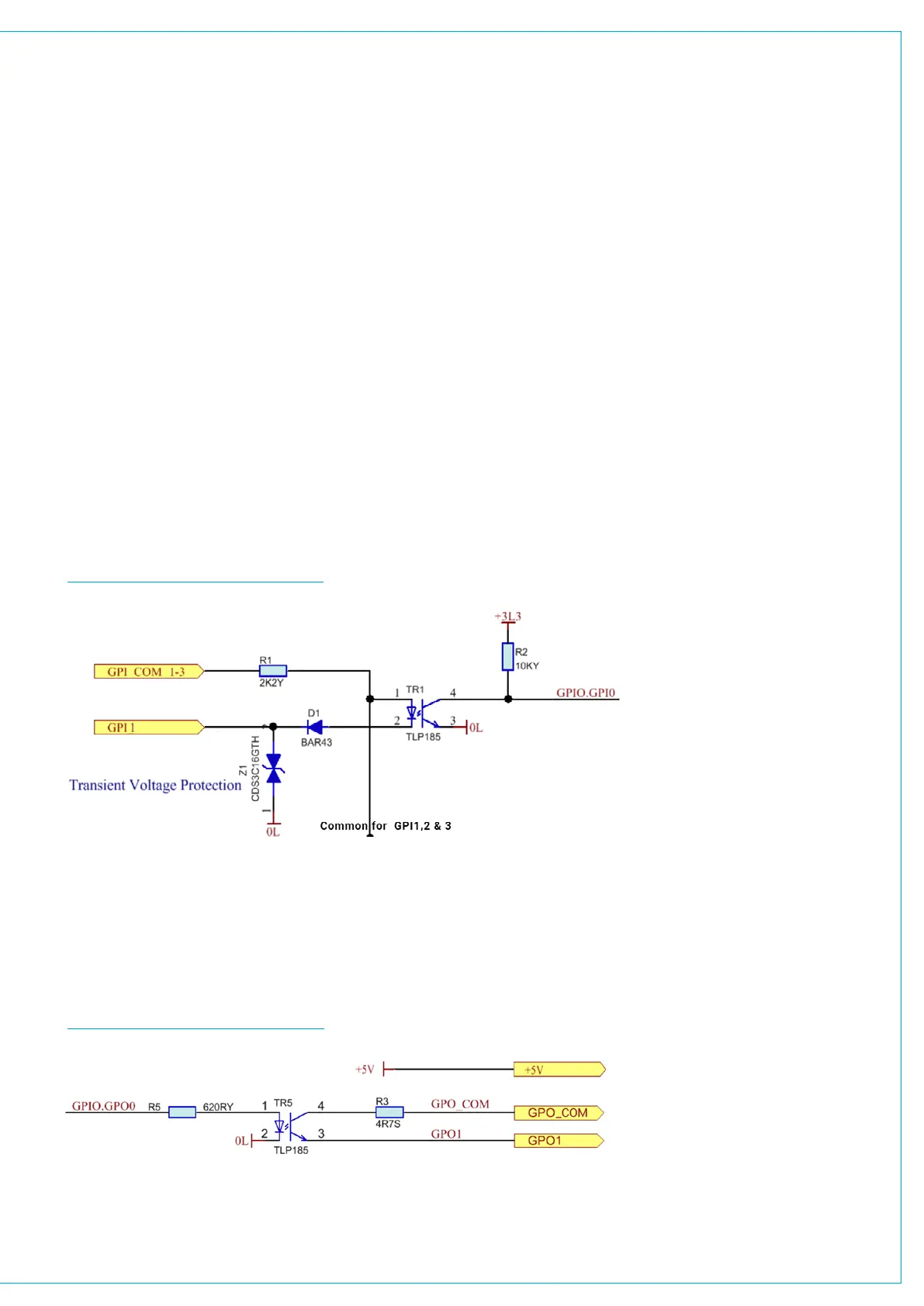 maximum voltage of 30V and passing a maximum current of 4mA. Note there is one common connection for all 6 GPO and 5V is