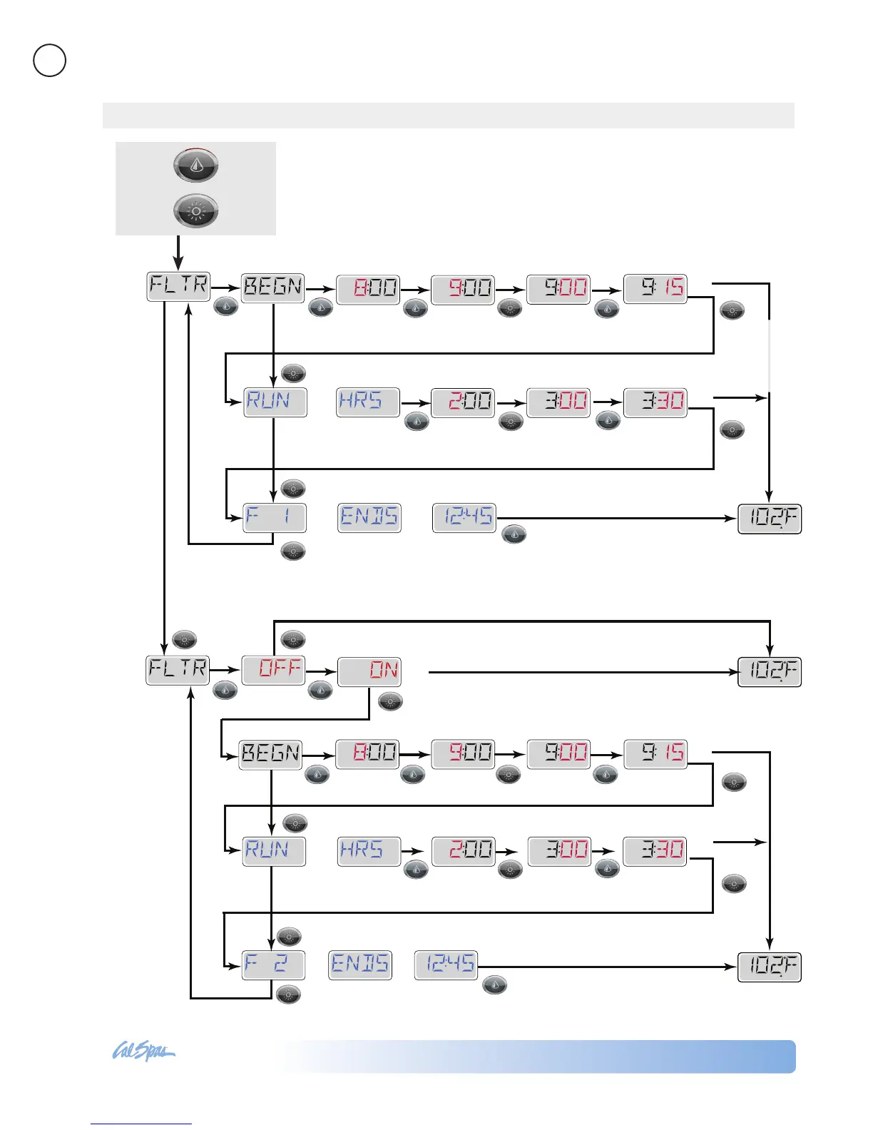 If Filter Cycle 2 is enabled, Filter 2 will appear in the LCD. If Filter 2 is disabled,