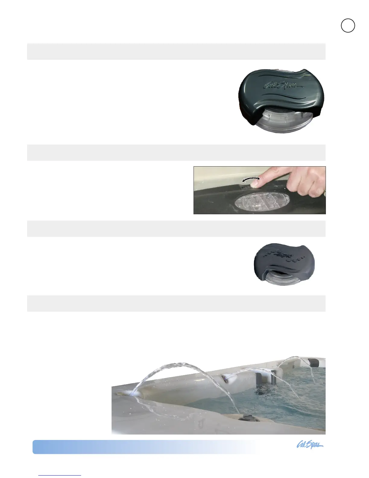 Your spa may include two to eight streamer waterfalls. When the booster pump is on, turn the 1” diverter