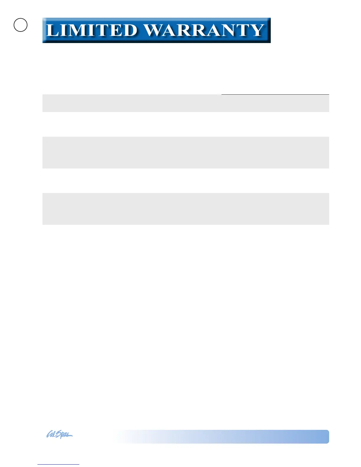 manufacture. To obtain service in the event of a defect covered by this Limited Warranty, notify your Cal Spa