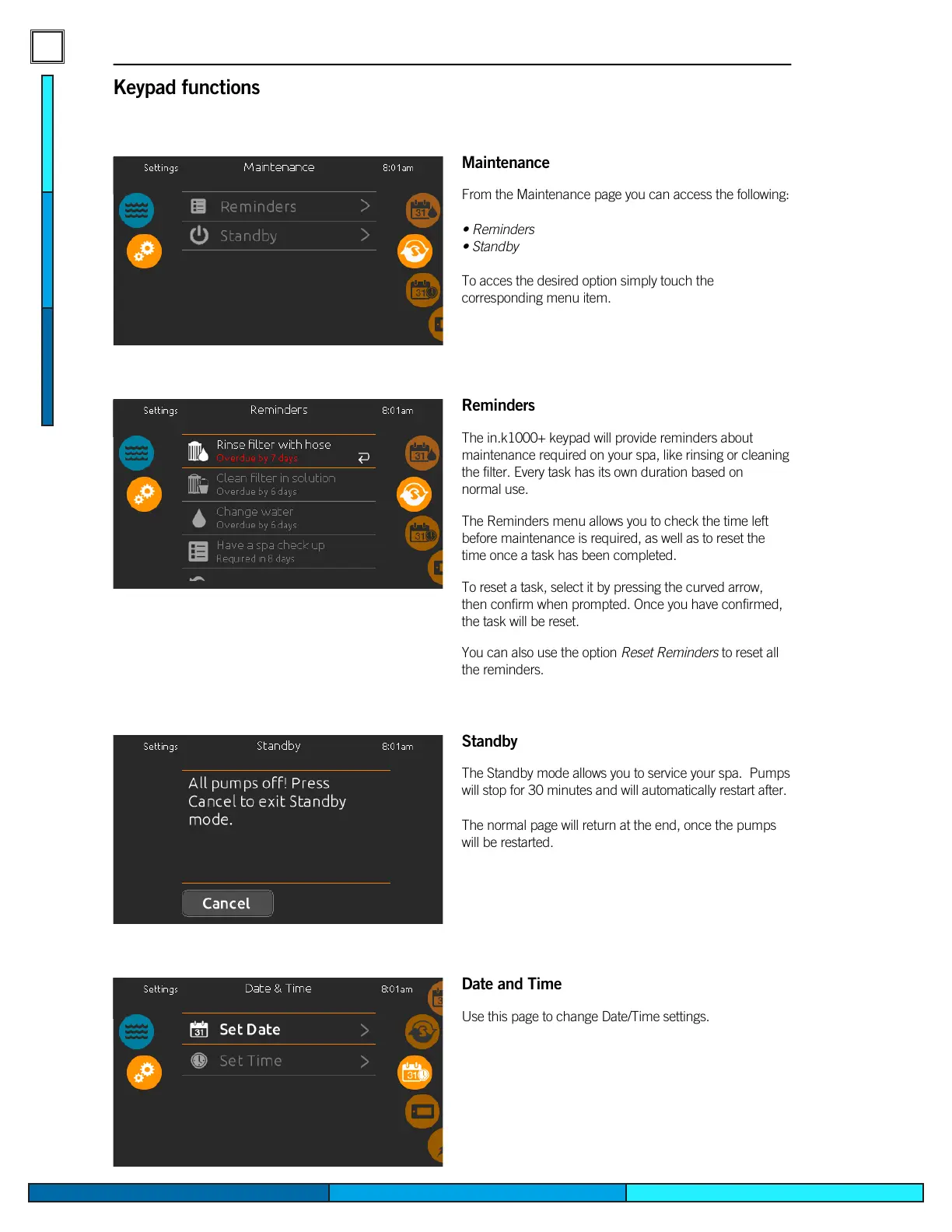 The Standby mode allows you to service your spa� Pumps