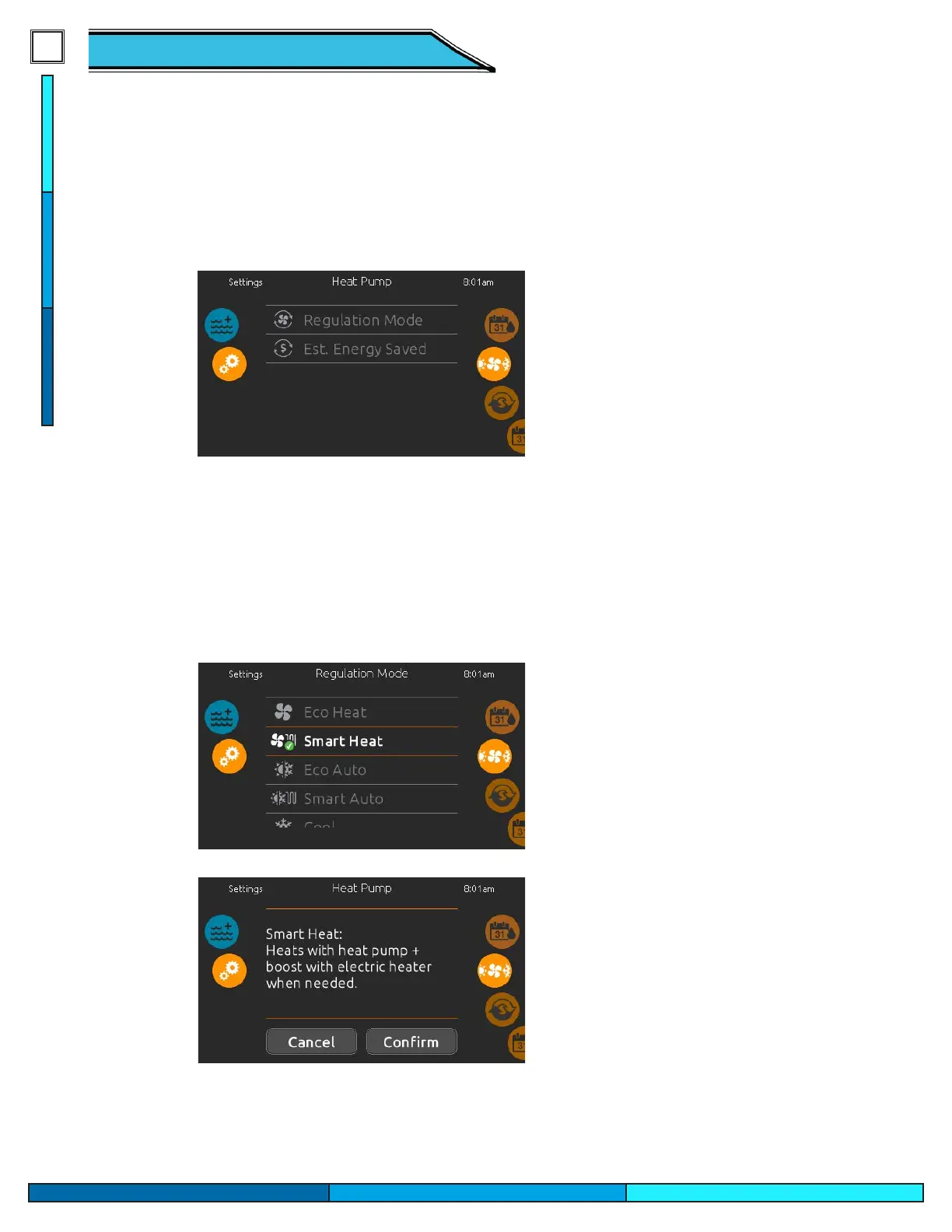 Heat Pump regulation settings� Choose between Eco Heat,