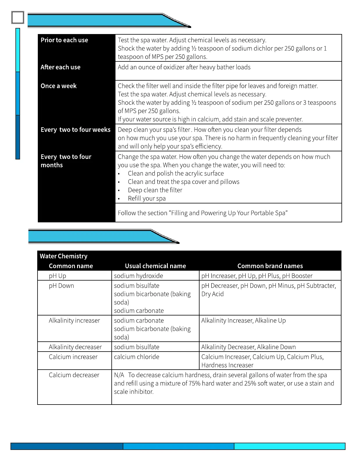 General Water Care ScheduleGeneral Water Care Schedule