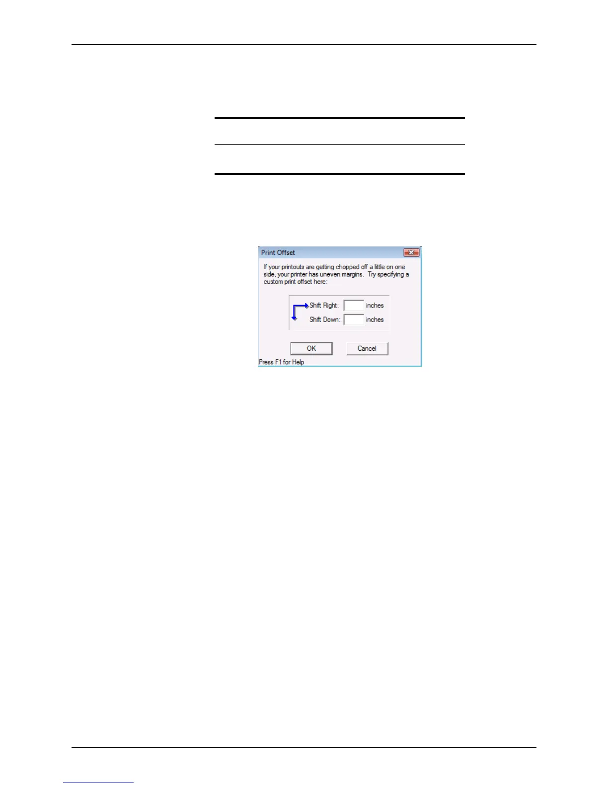 ShiftRight or ShiftDown fields, enter the number of inches to offset the printed