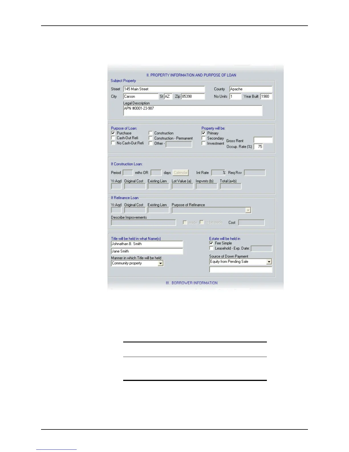 Loan Application and go to Section II. Property Information
