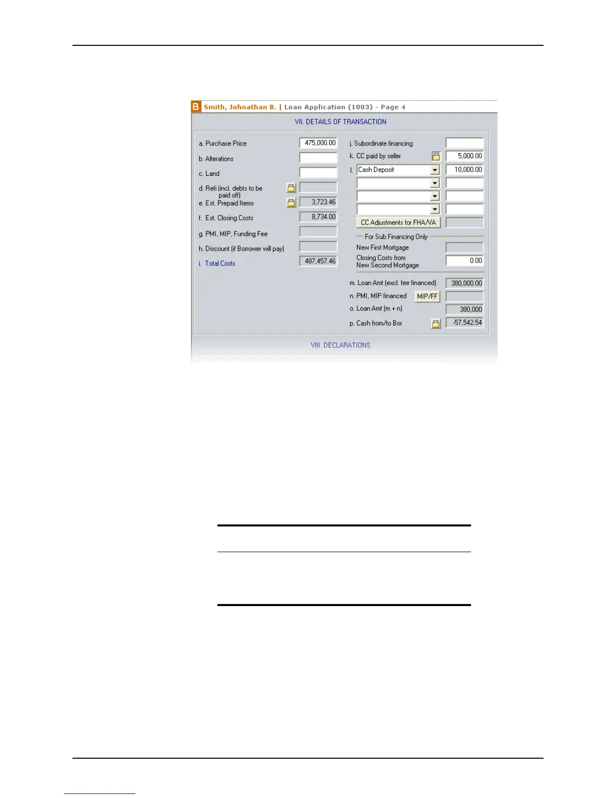 3 If the loan is an FHA or VA loan, click the CC Adjustments for FHA button to open the