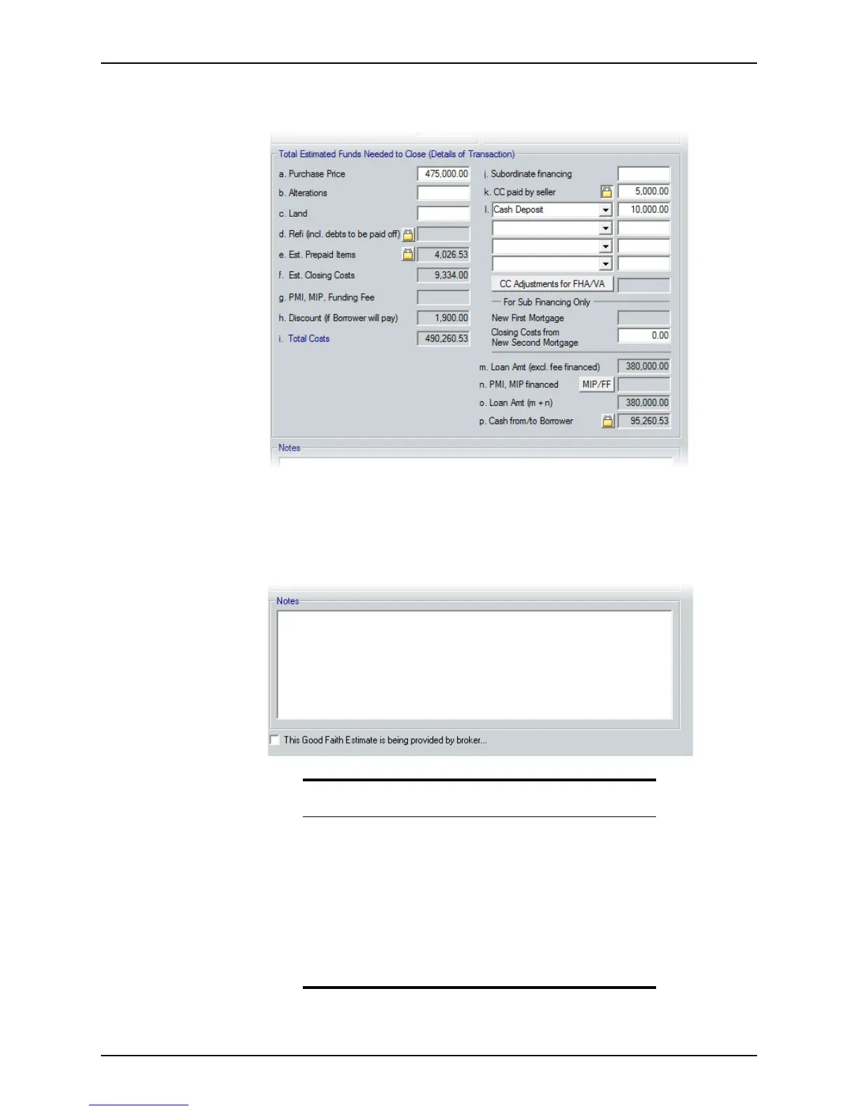 Notes section and select the This Good Faith Estimate is being