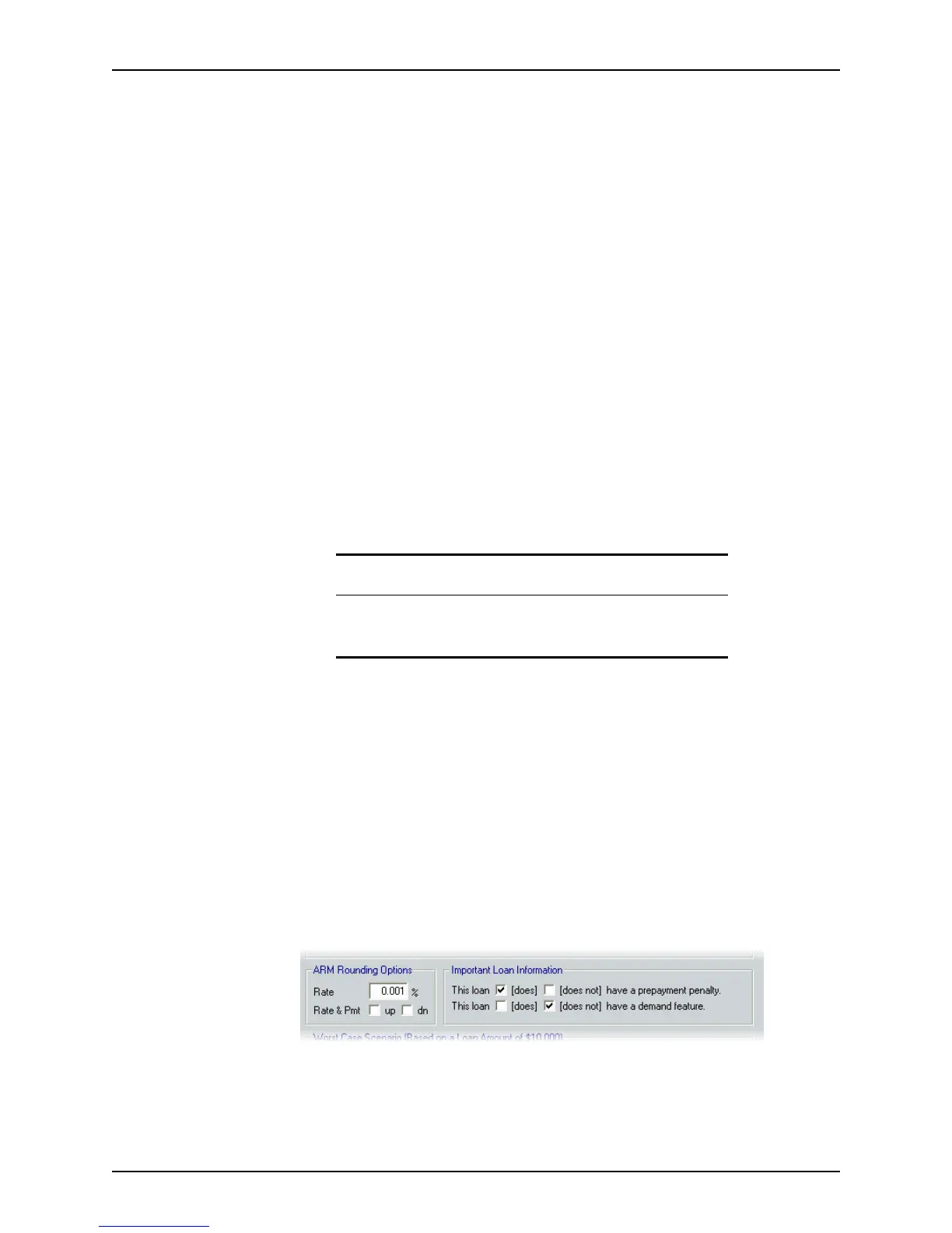 ARM Rounding Options and Important Loan Information sections.