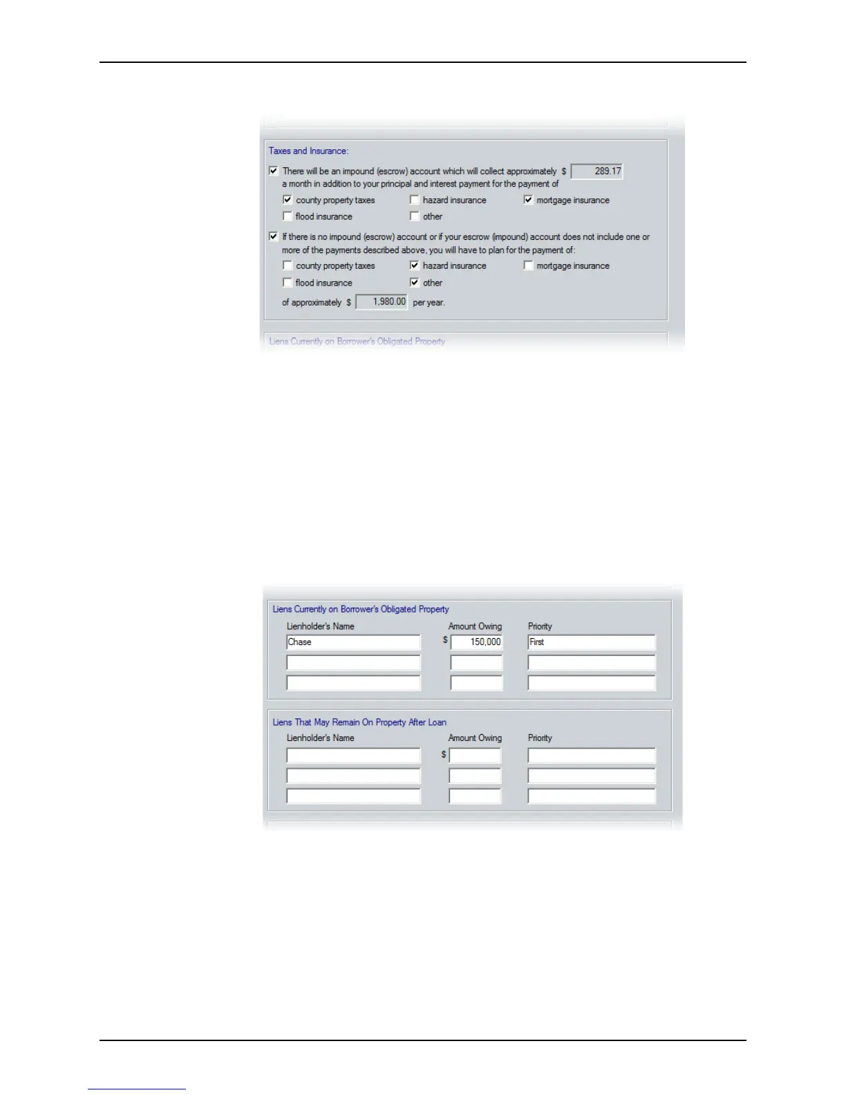 Liens Currently on Borrower’s Obligated Property section, enter the