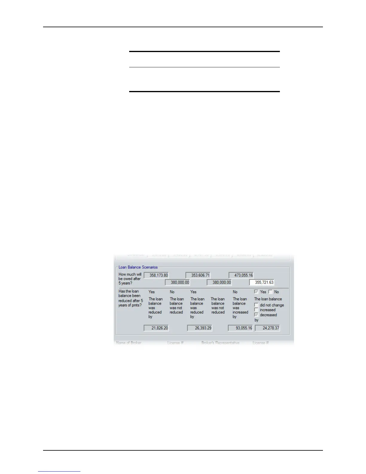 Loan Balance Scenarios section shows how much the loan balance increased or