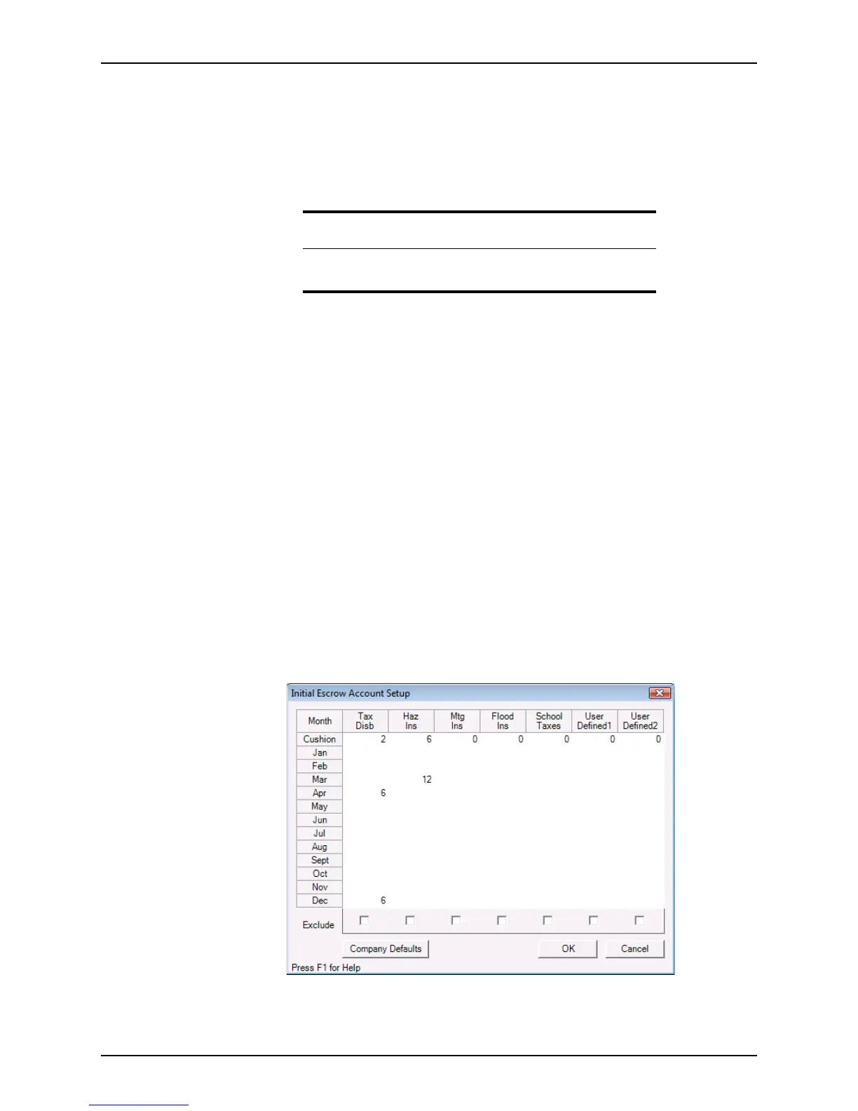 Initial Escrow Account Setup dialog box.