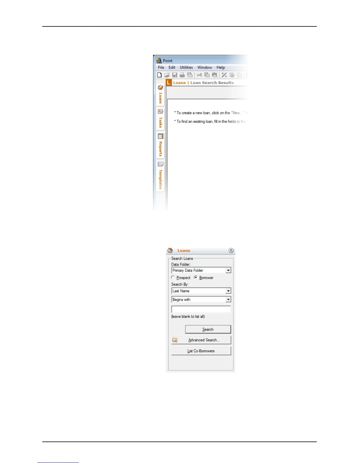 Use the loans tab to access prospect and borrower loan files.