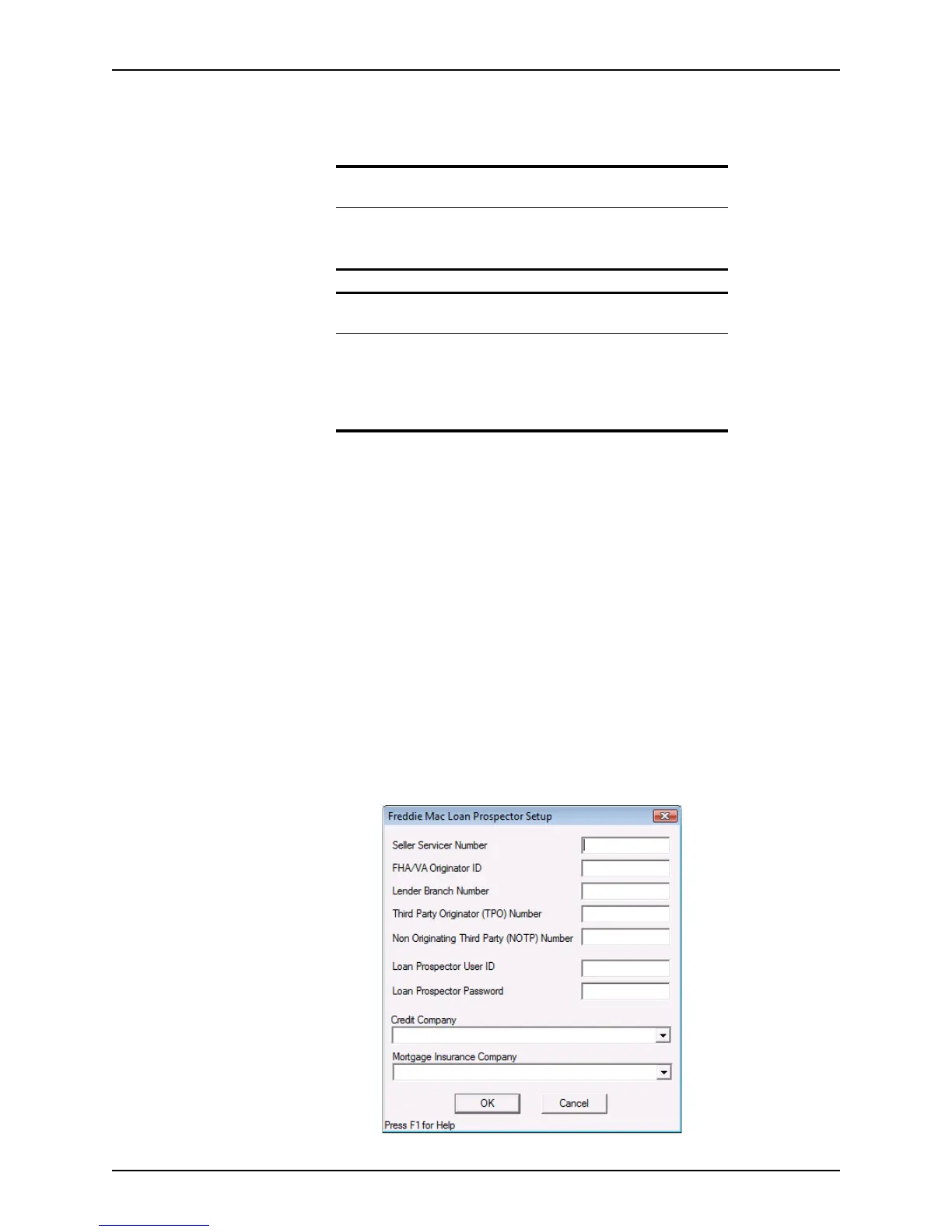 configure Freddie Mac, refer to Connecting to the Freddie Mac LP