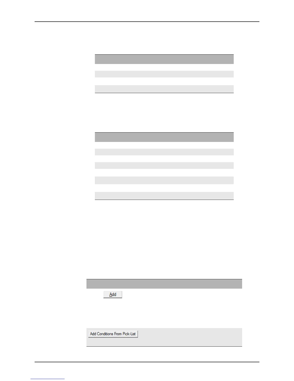 Conditions screen, use the Add button to add new