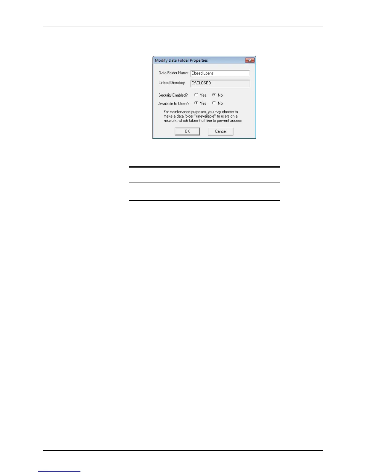 Modify Data Folder Properties dialog box.