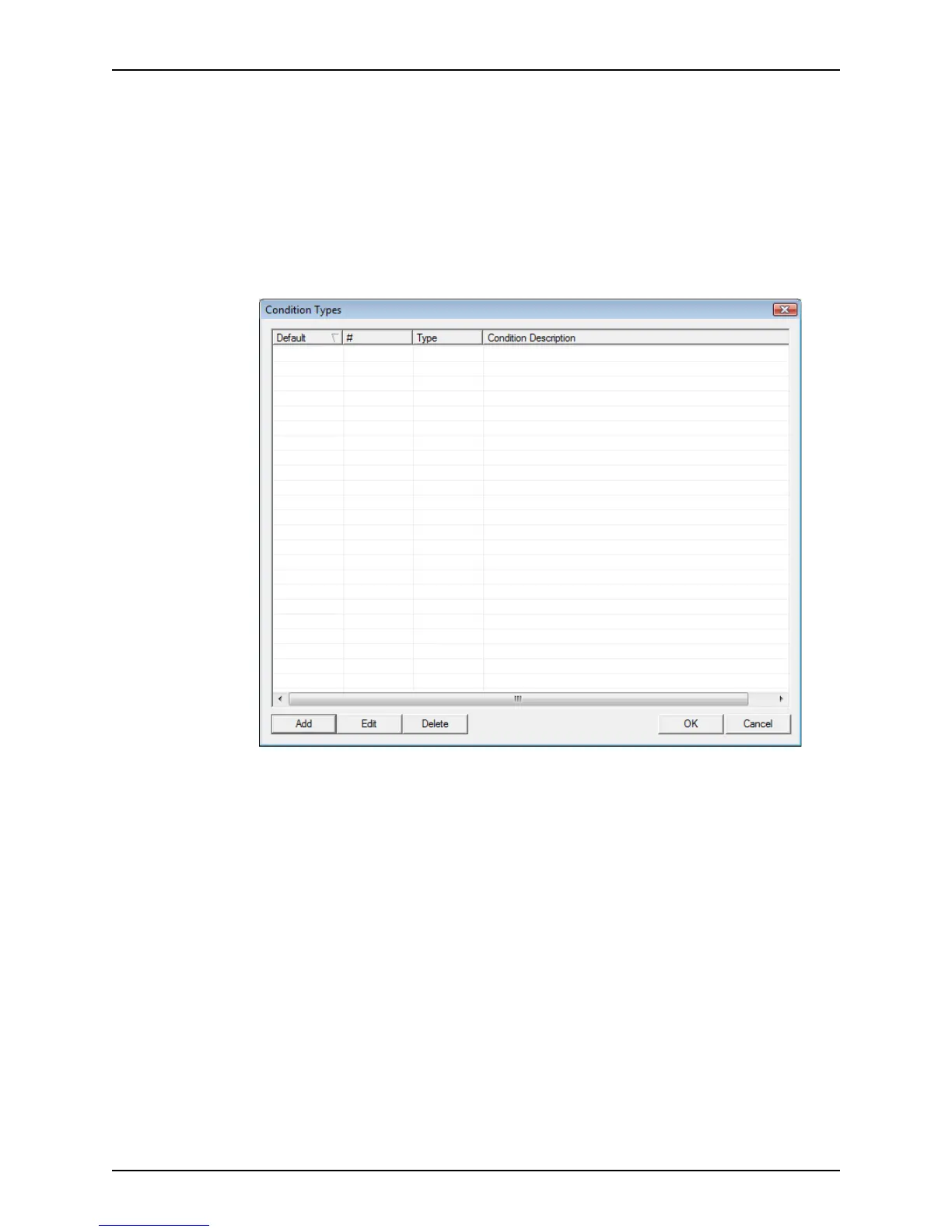 The information in the Condition Types dialog box is used to populate loan conditions in