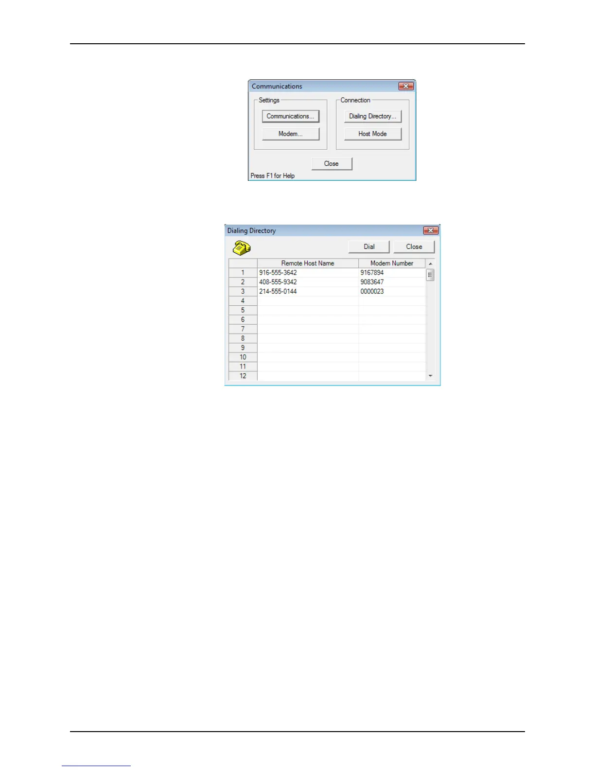 5 To dial the remote host, select the remote host name and click Dial.