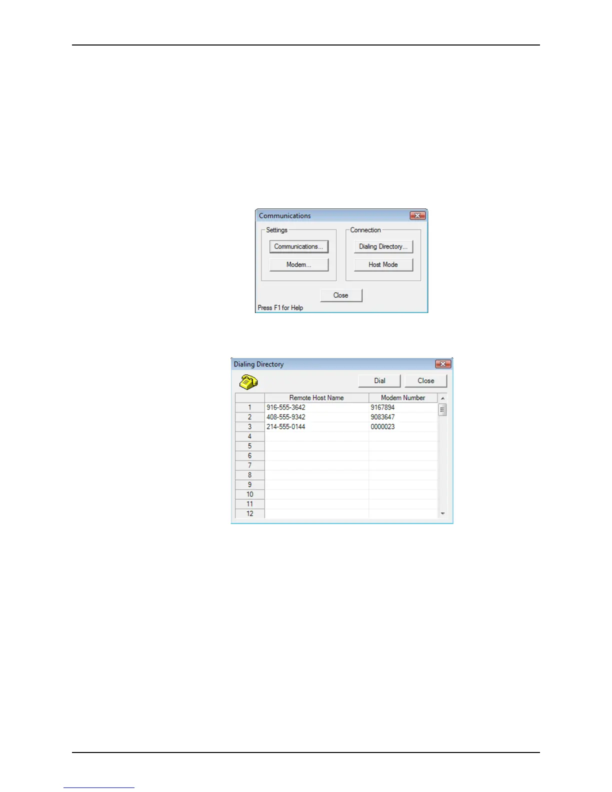 Dialing Directory dialog box is displayed.