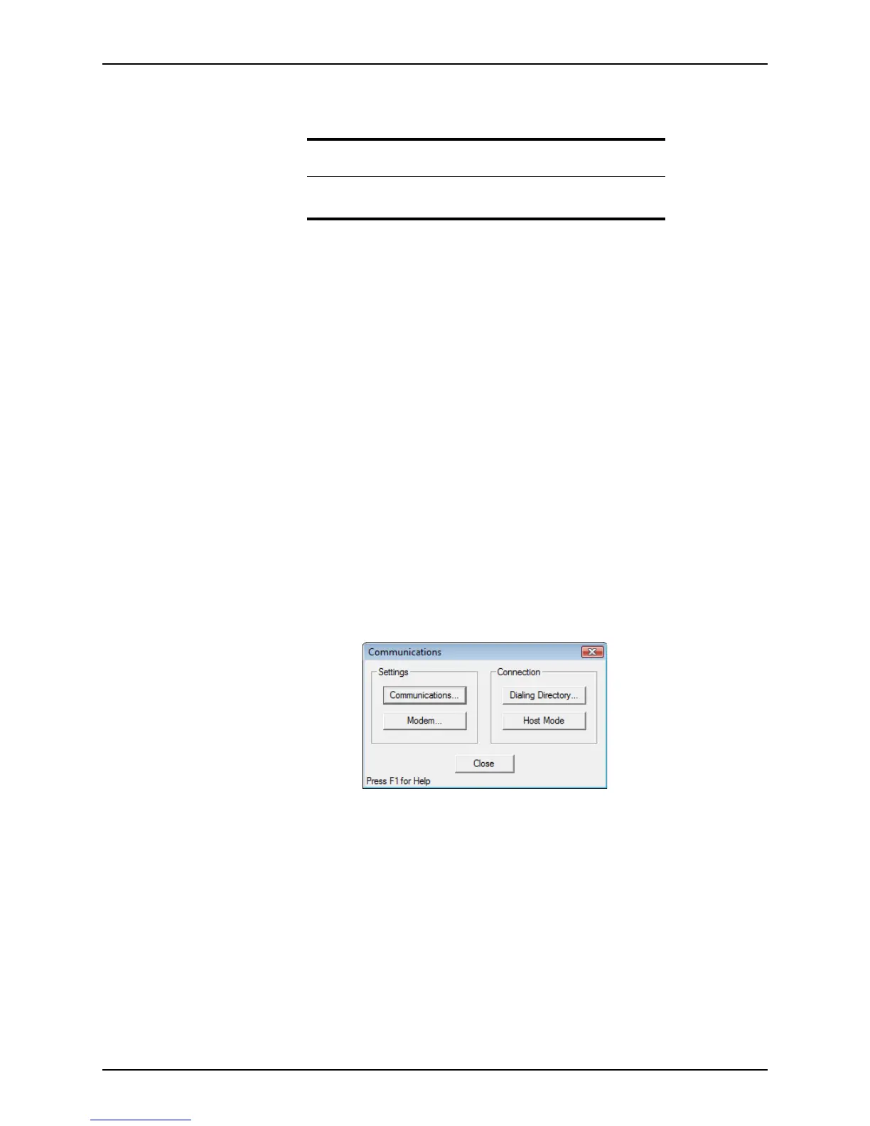 Communications dialog box is displyed.