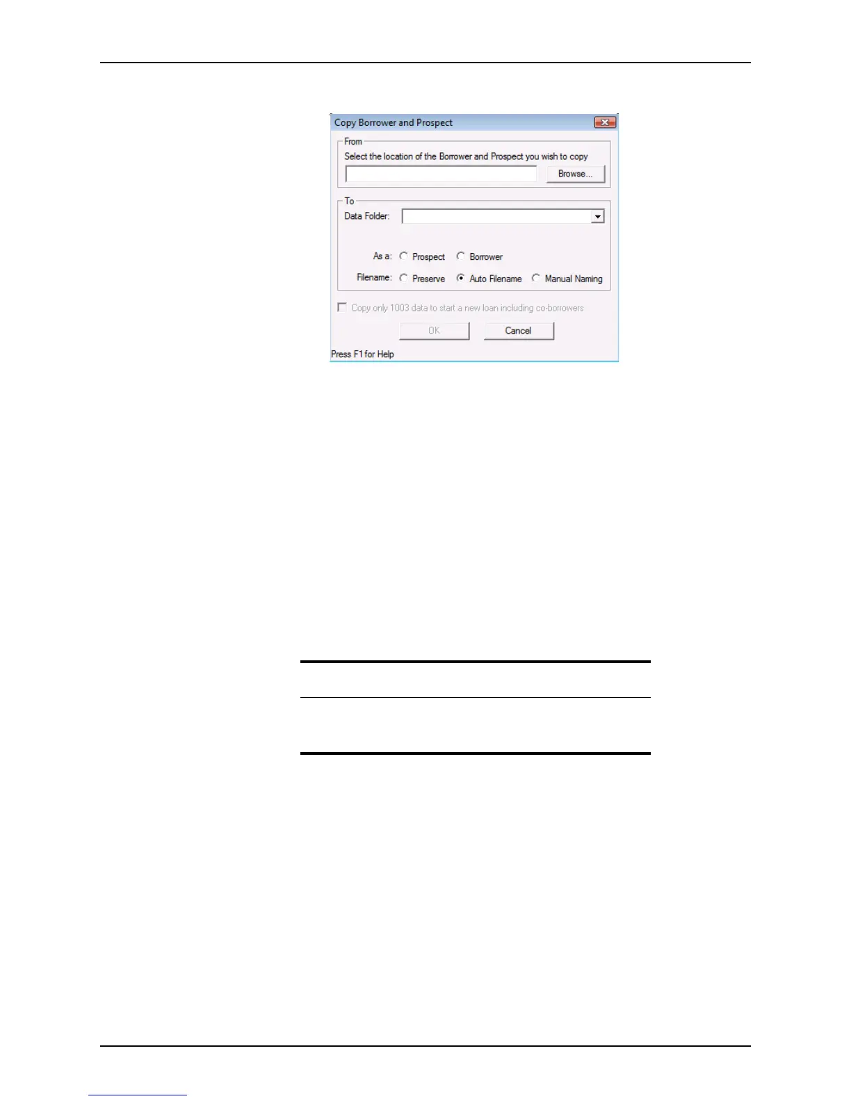 3 The Copy Borrower and Prospect dialog box is displayed.