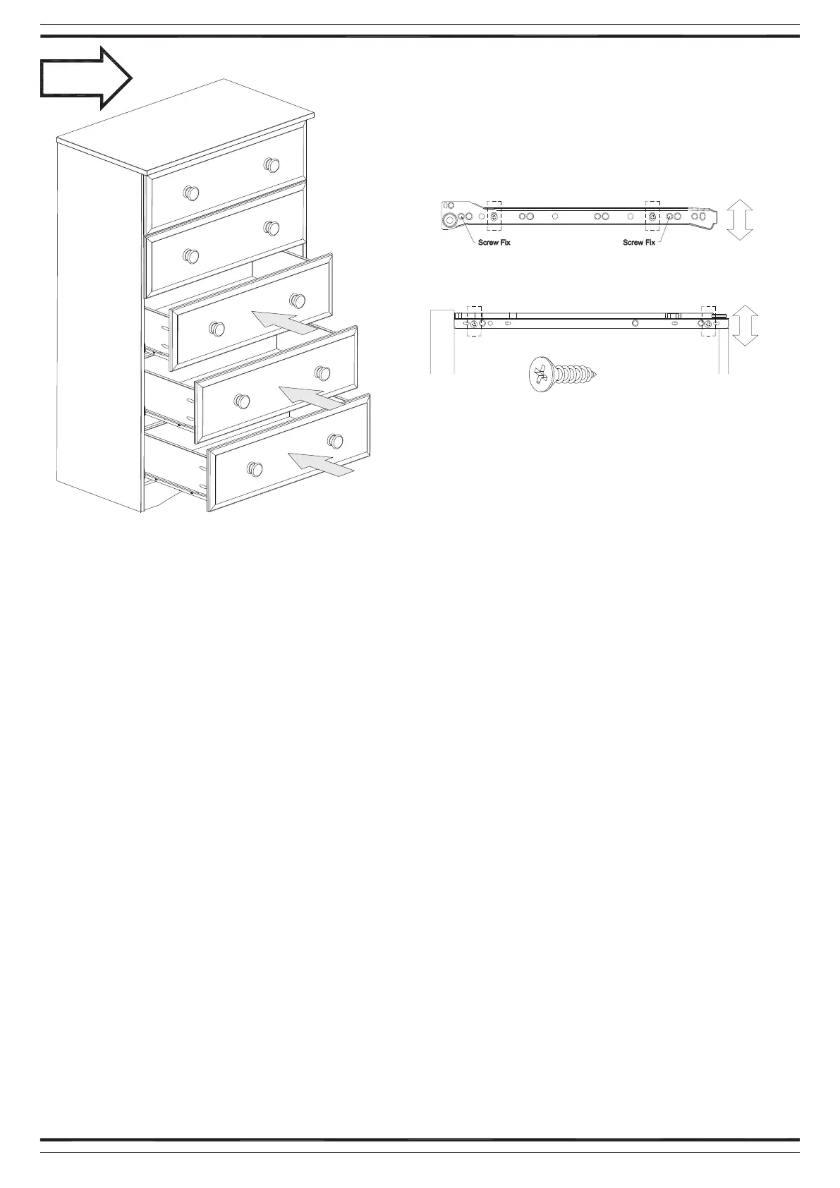 Remove drawer from chest. Loosen screws indicated on side of metal track. Make needed