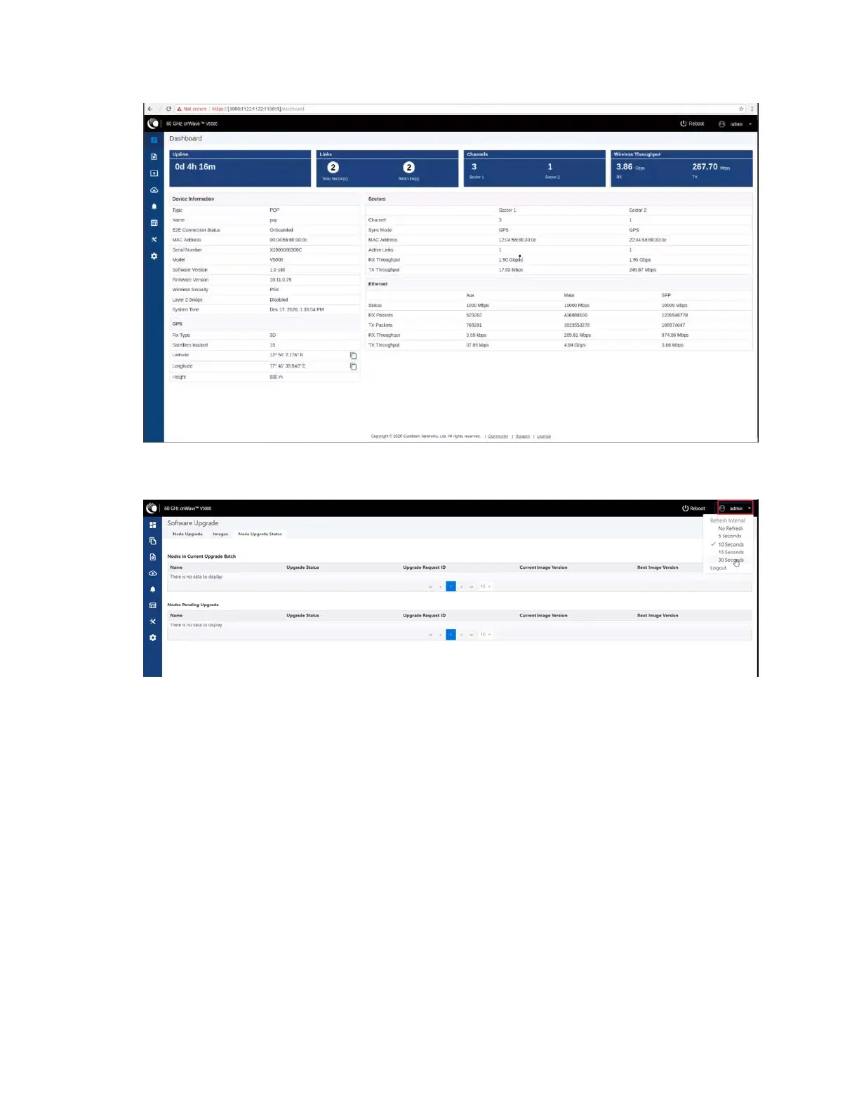 Users can select the refresh time interval. Click admin at the top-right and select the Refresh