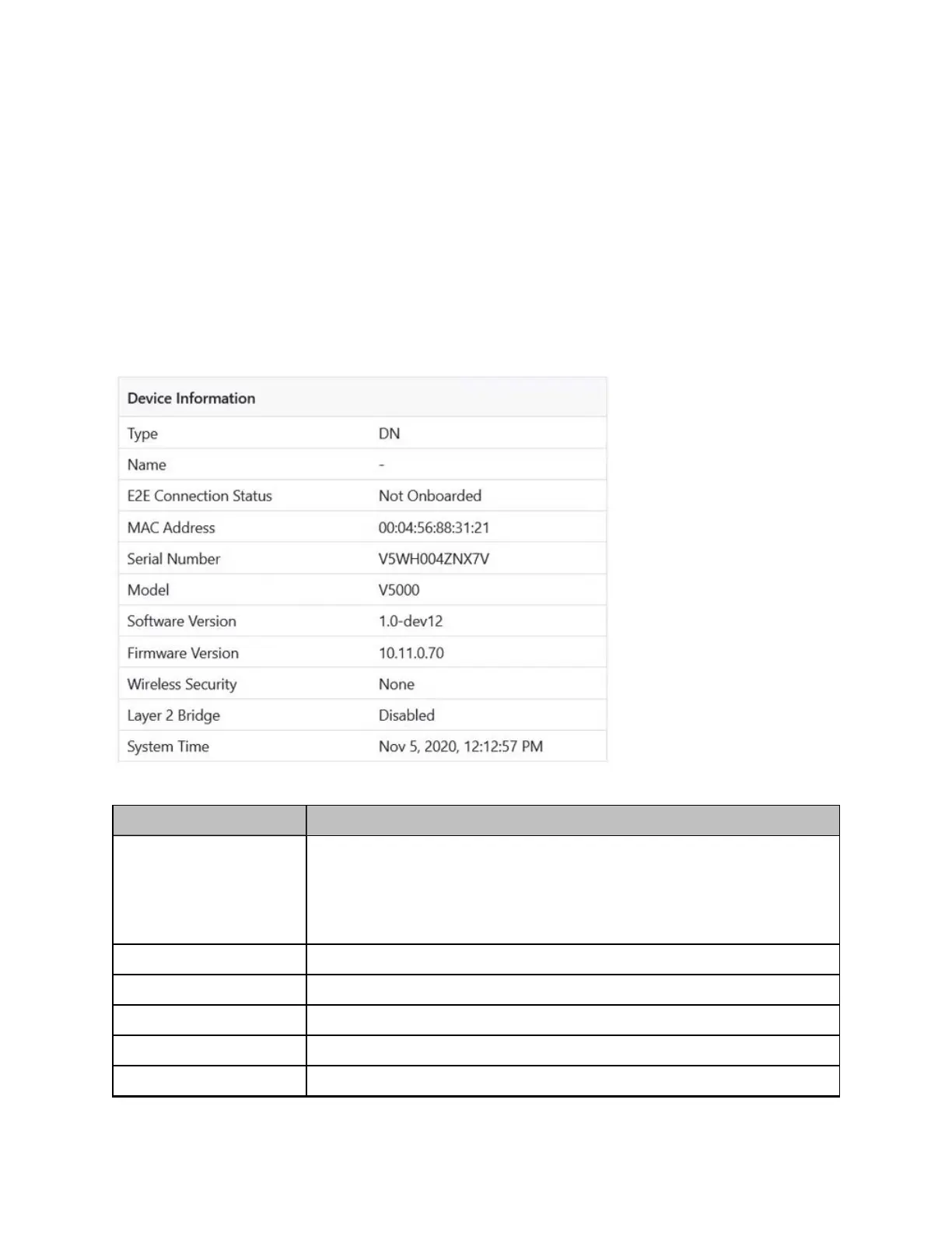 Serial Number Displays the serial number of the 60 GHz cnWave device