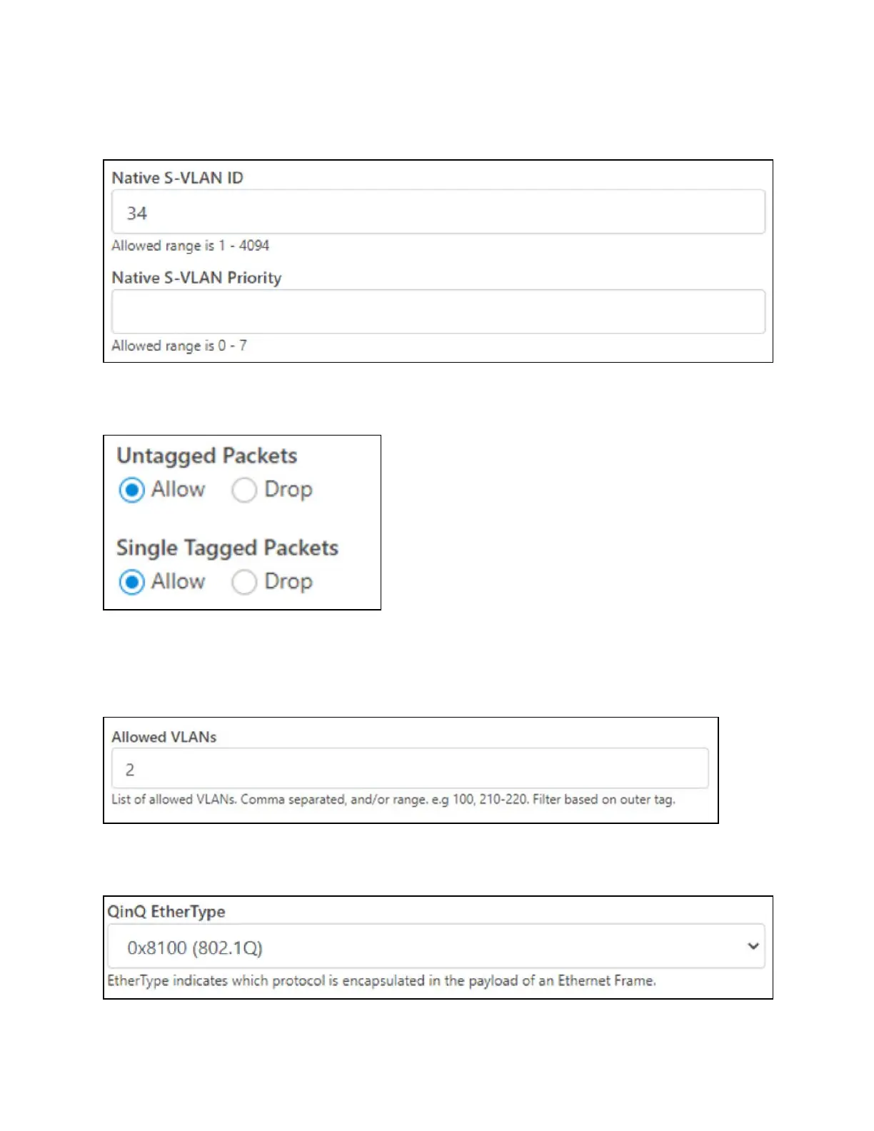 VLAN fields are not necessary only when dropping single-tagged packets. Native S-VLAN fields are not