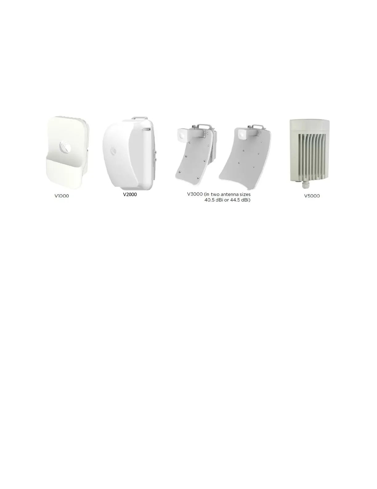l V3000: A Client Node (CN) is available in two sizes - 44.5 dBi high-gain antenna and 40.5 dBi