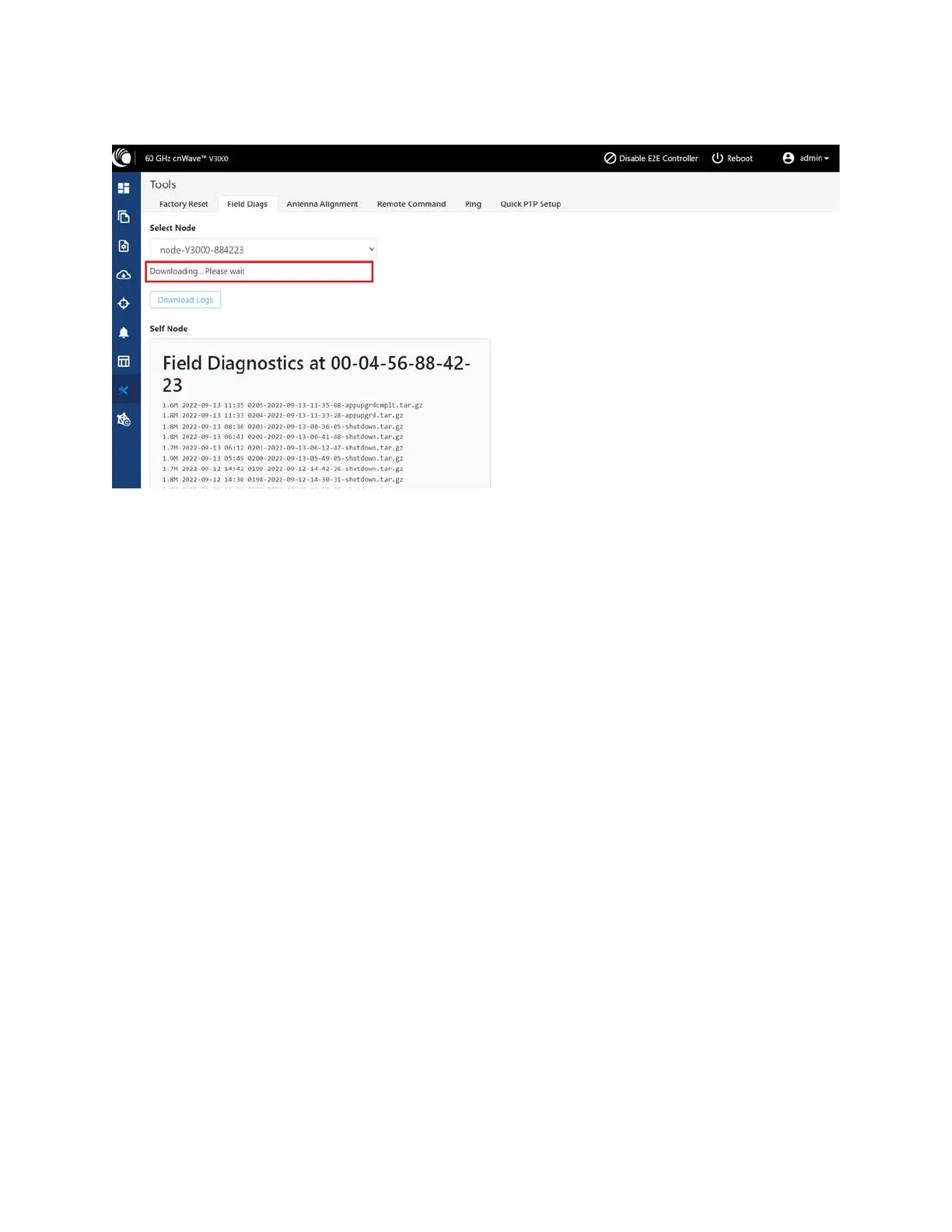 To download the logs for a self node, click Download Logs at the bottom and save the log file.