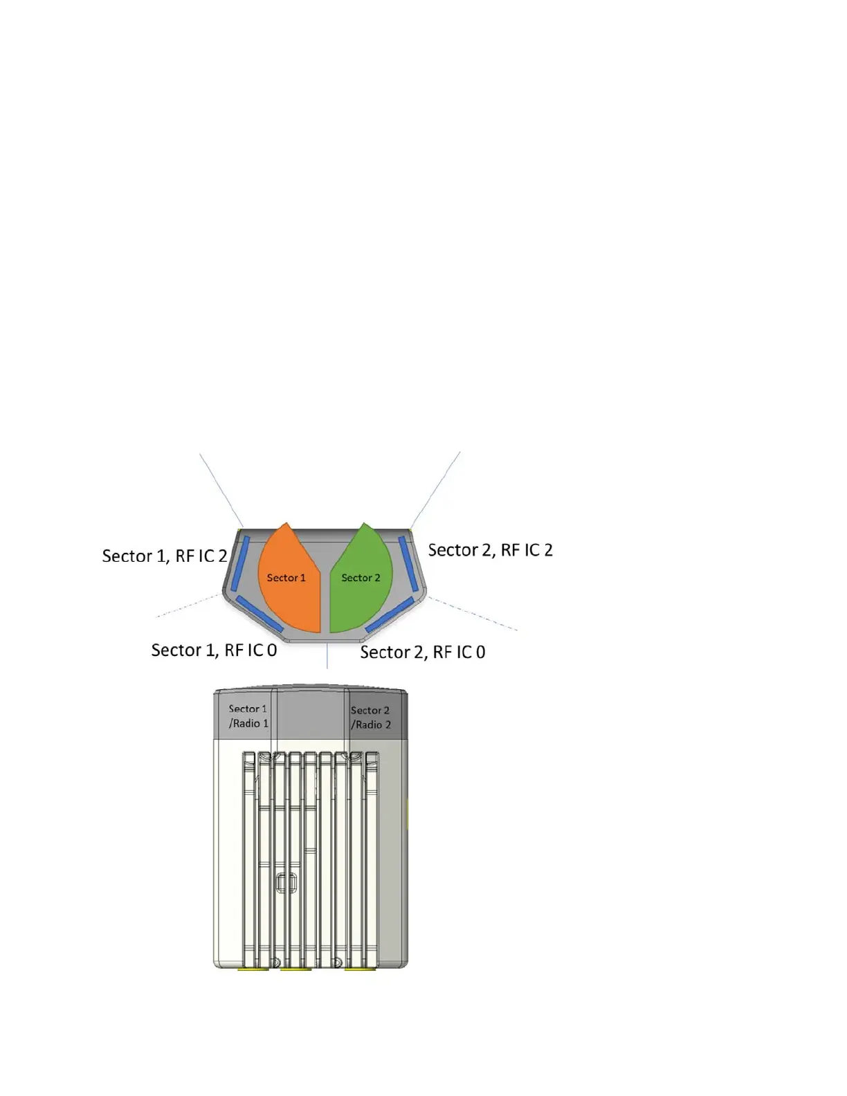 Each sector is an independent radio or a baseband unit. Each sector has 2 RF tiles connected to provide