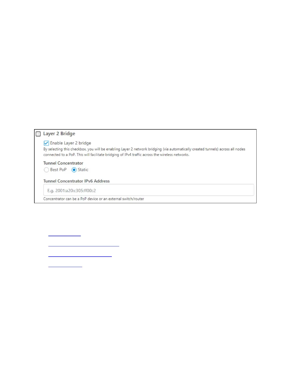 This allows cnWave PoP nodes to forward traffic to other cnWave PoP nodes via a wired connection
