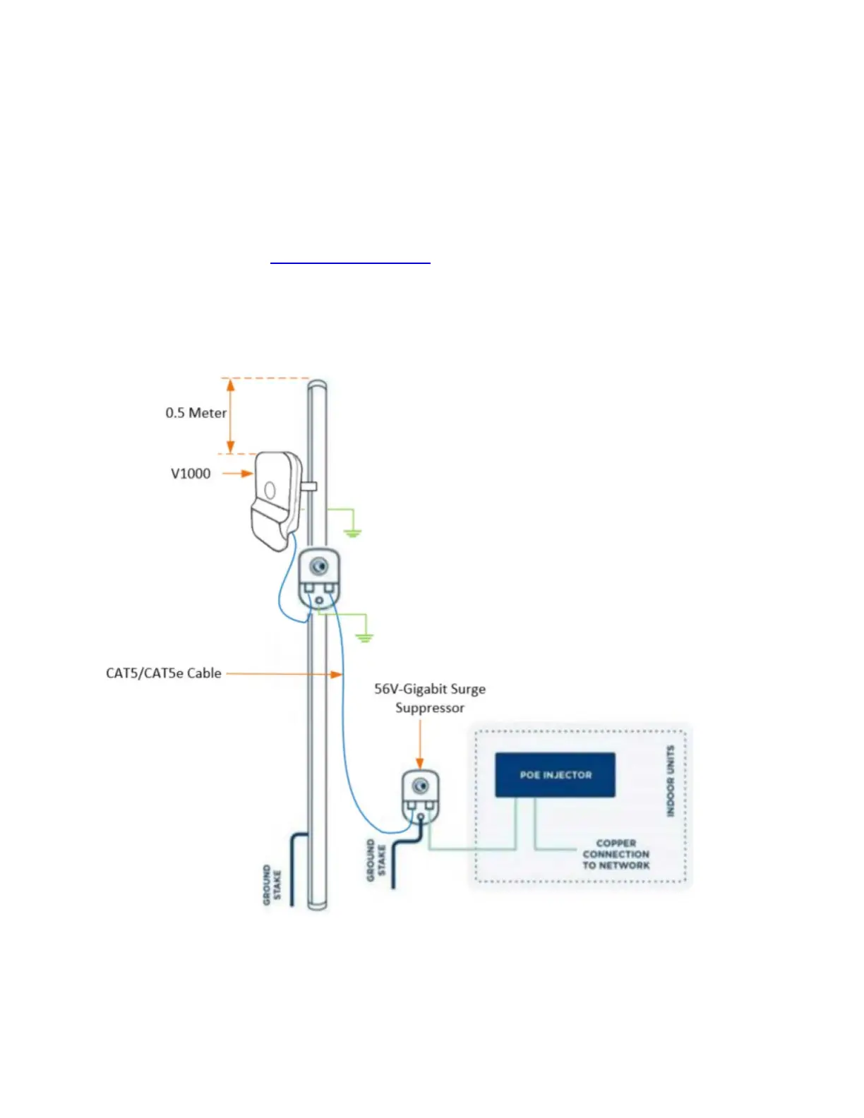 Figure 67 shows a typical installation of V1000 CN on a mast and powered through PoE power injector.