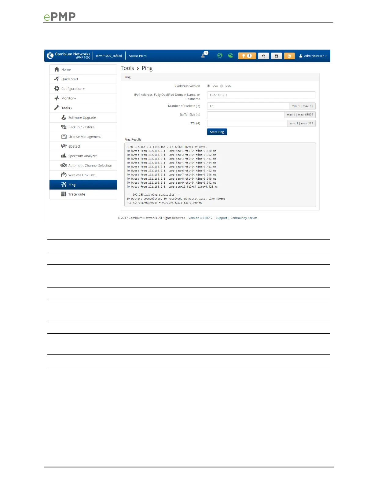 Cambium Networks ePMP 2000 - AP Ping Attributes; AP Ping Page