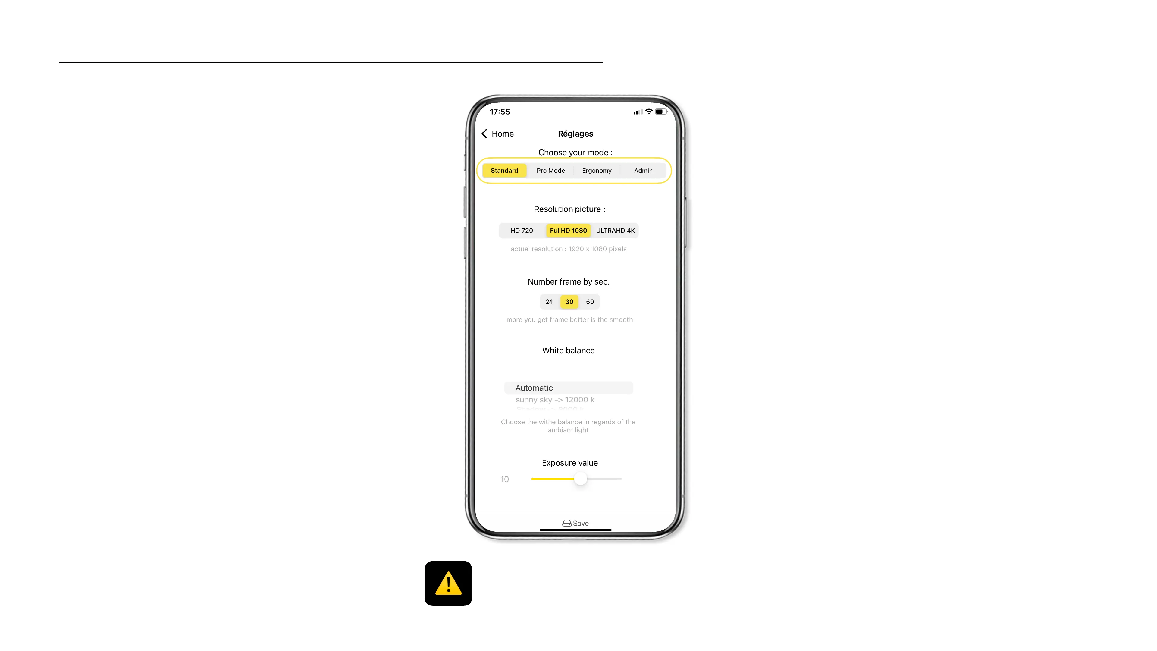 (ISO, Saturation, Contrasts,…)