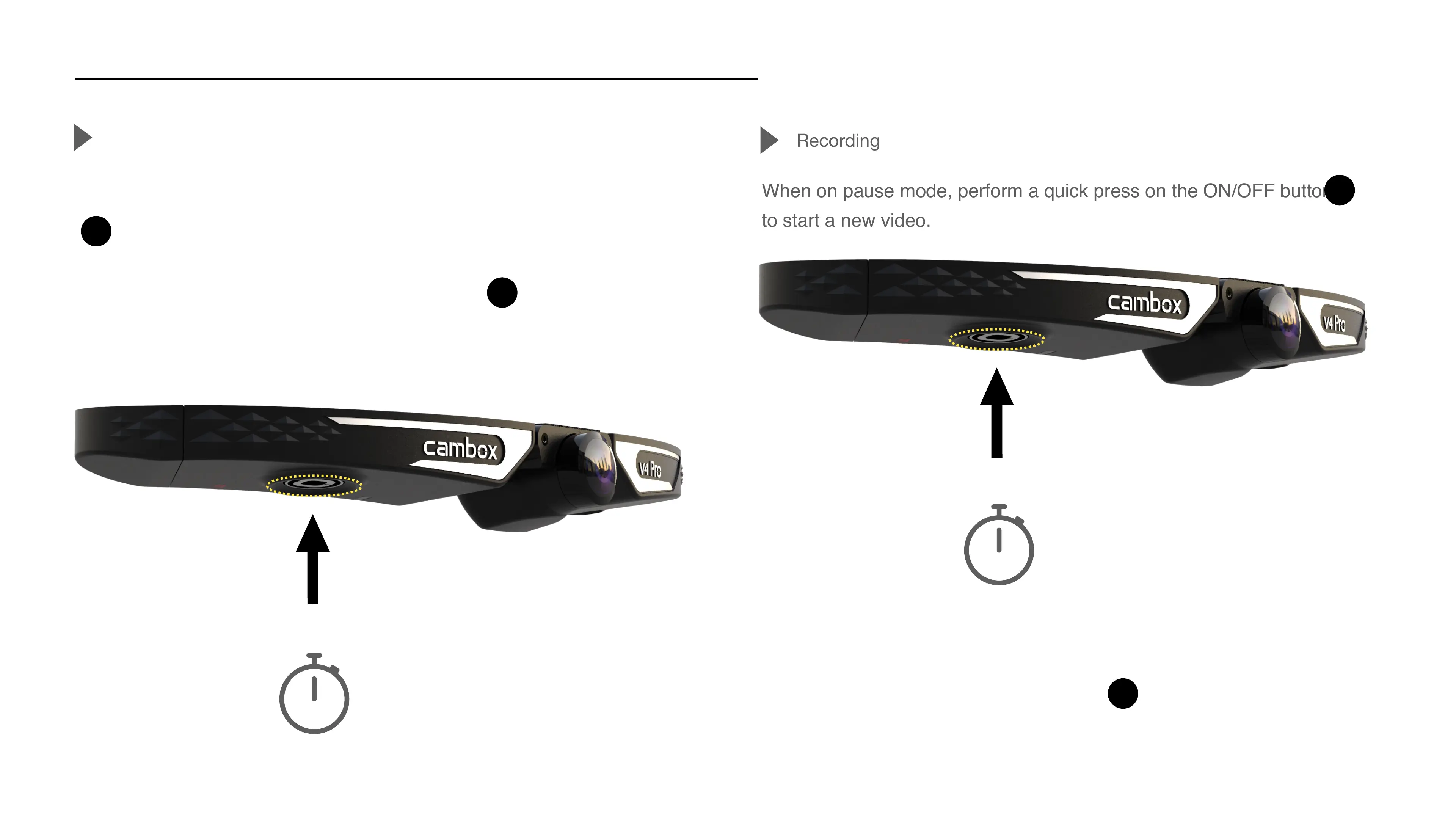To stop recording, perform a quick press on the ON/OFF power button