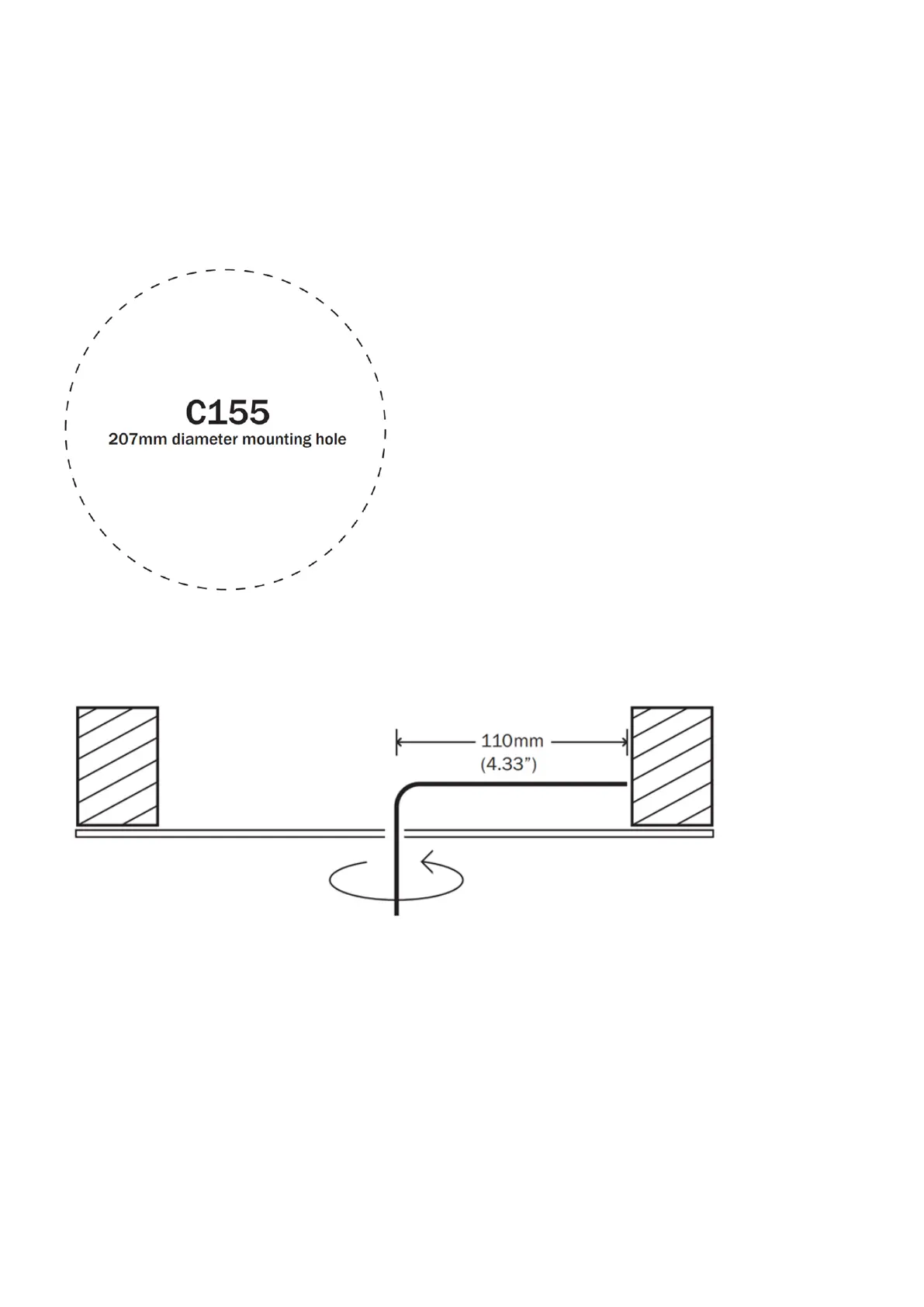 at least 80mm(3.15”) of clearance behind the mounting surface.