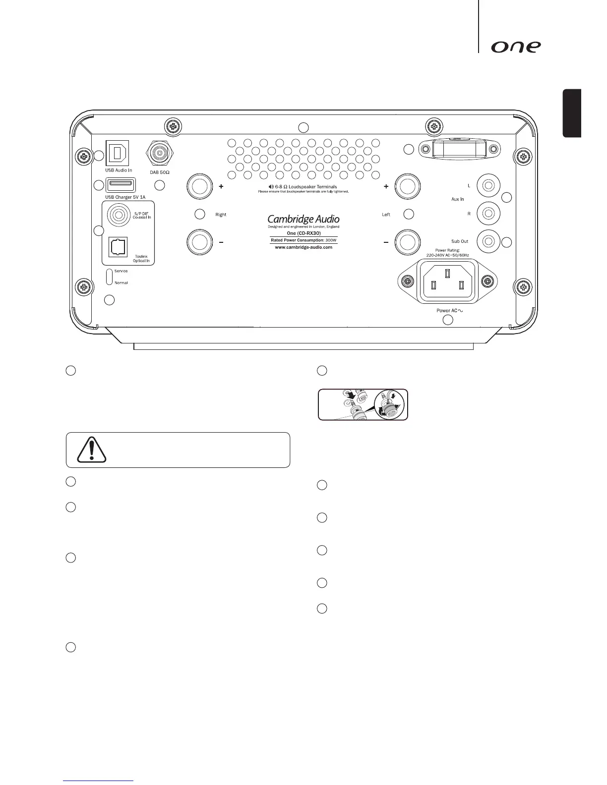 The One has a 50Ω F-type screw connection aerial for DAB and FM signals. A