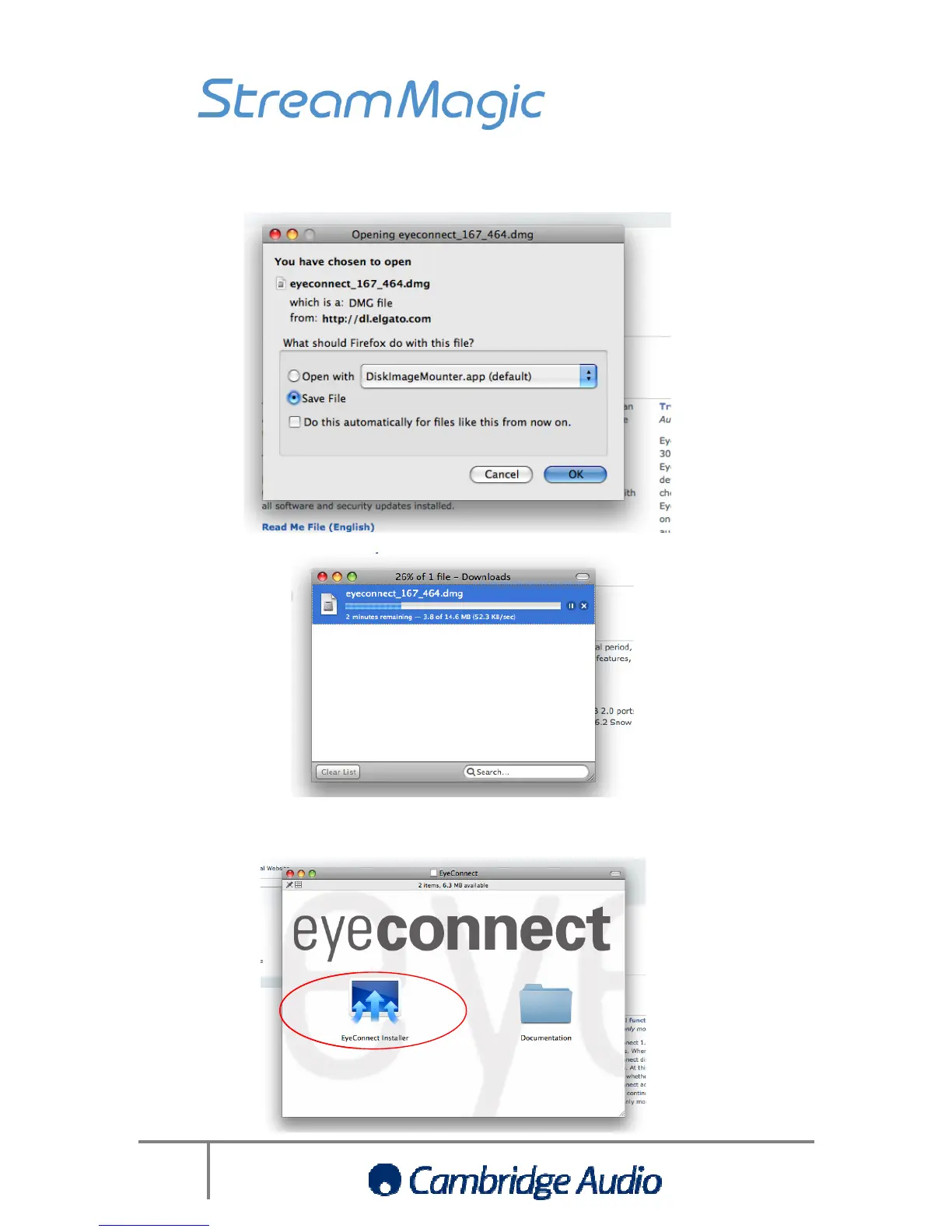 Cambridge Audio StreamMagic 6 - 2. Save and Open Disk Image; 3. Launch EyeConnect Installer